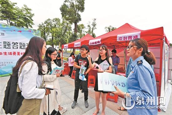 近日,泉港区在91吃瓜 石化学院举办2019年食品安全宣传周启动仪式暨“食安 请回答”主题答题活动。现场设置答题挑战和互动游戏环节,包括食品安全、餐饮安全、药品安全等内容,引导群众积极参与食品安全普法宣传和科学知识普及,营造浓厚的食品安全社会共治氛围。 (刘泽阳 唐焱婷 摄)