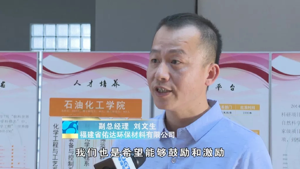 据福建省佑达环保材料有限公司副总经理刘文生:“借助福州大学石油化工学院强大的人才优势,企业可以把市场反馈的消息反馈给学院,做有针对性地研发和研究,共享这样的研发成果,对于企业、学院来说都是非常有利的。”