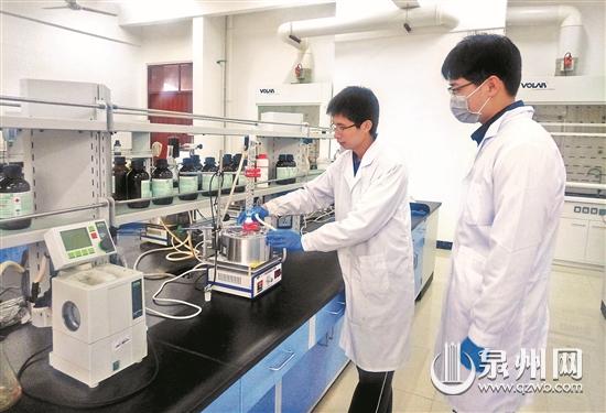 福大石化学院师生在设备先进的实验室里开展化工合成实验 (伍宇翔 摄)