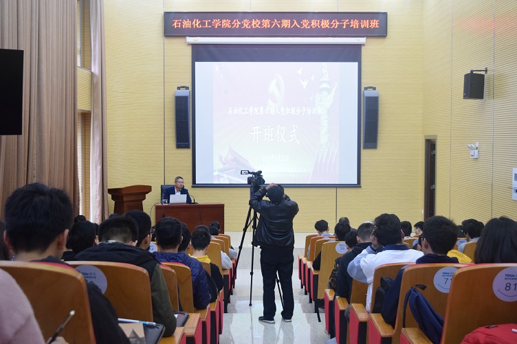 2019年3月23日上午9:30泉港楼南101报告厅,石油化工学院分党校第六期入党积极分子培训班开班仪式暨第一讲顺利举办,院党委副书记岳志强老师为积极分子们做了开班动员并以“立足石化,建设四化”为主题为积极分子们做了一场精彩的报告。