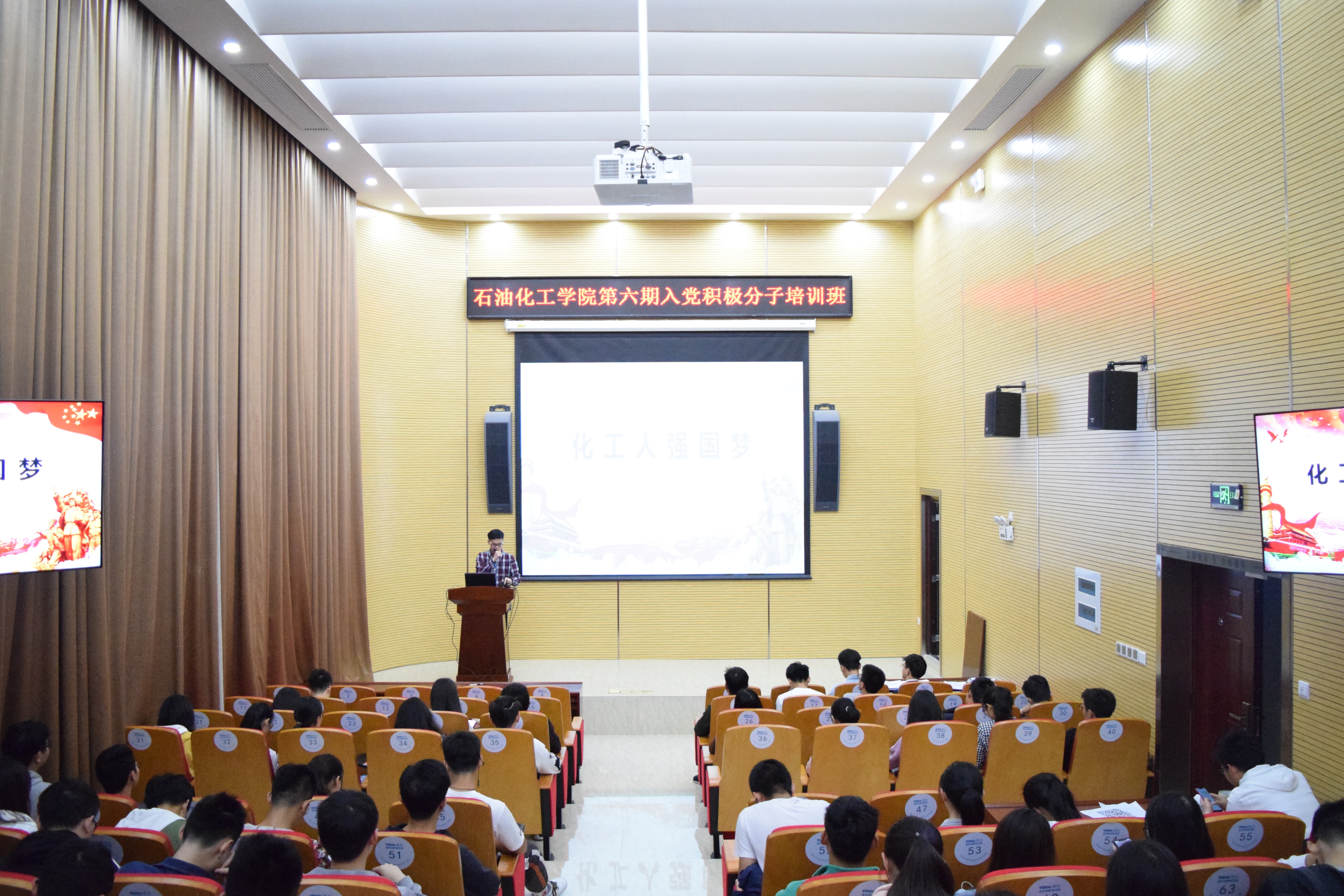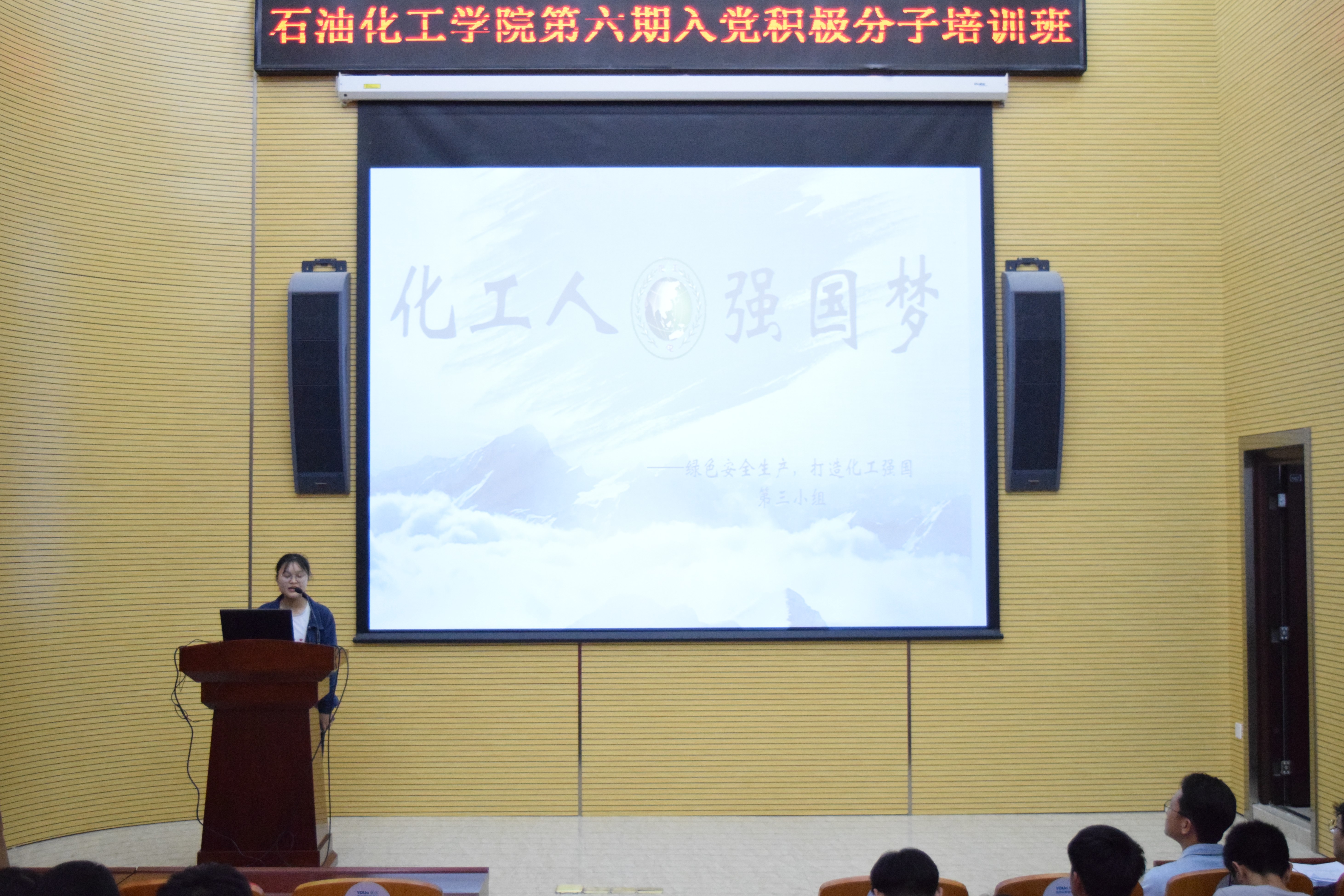 4月27日下午三点泉港楼南优尔报告厅,以“化工人,强国梦”为主题的第六期入党积极分子培训班微党课活动于院办顺利进行。