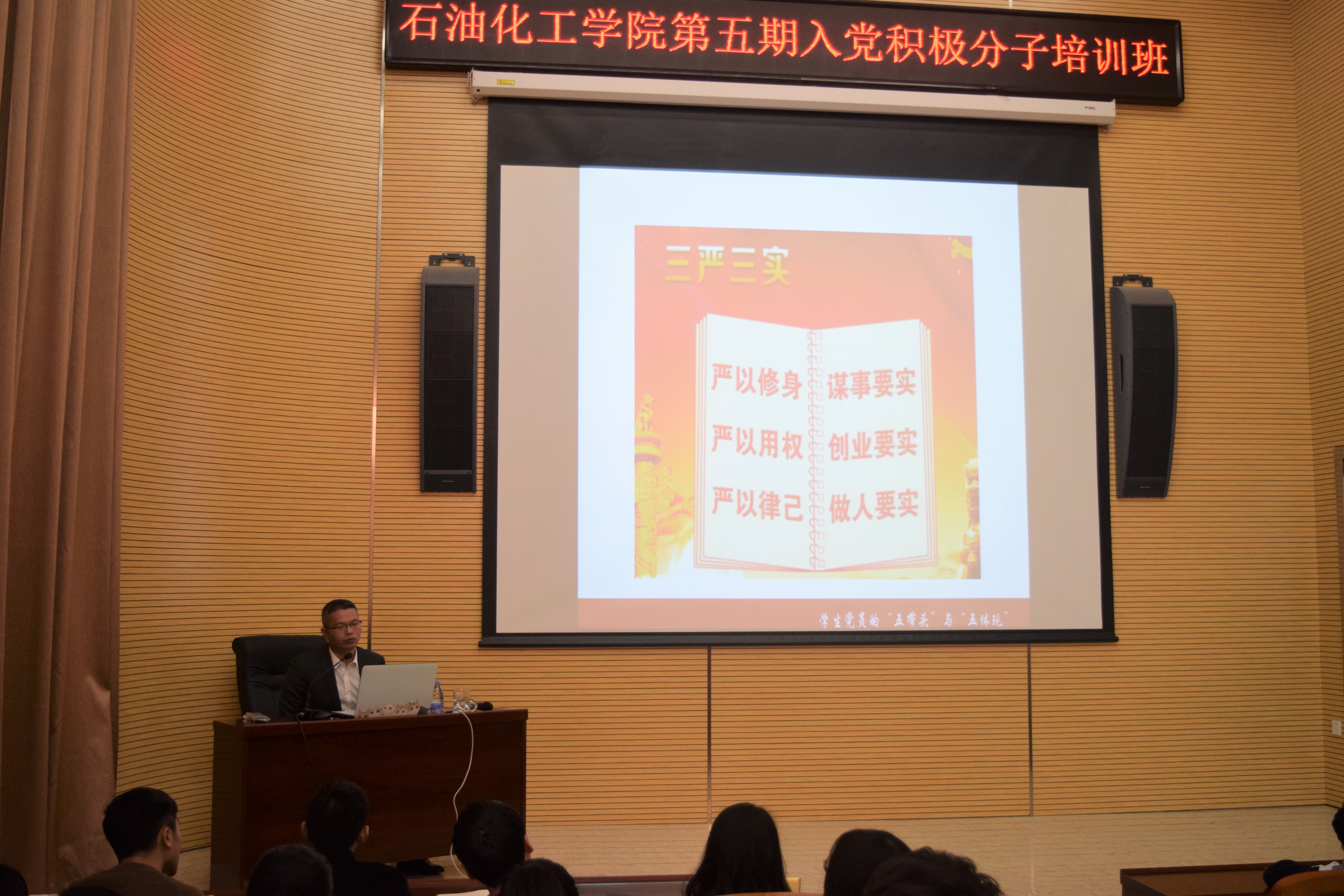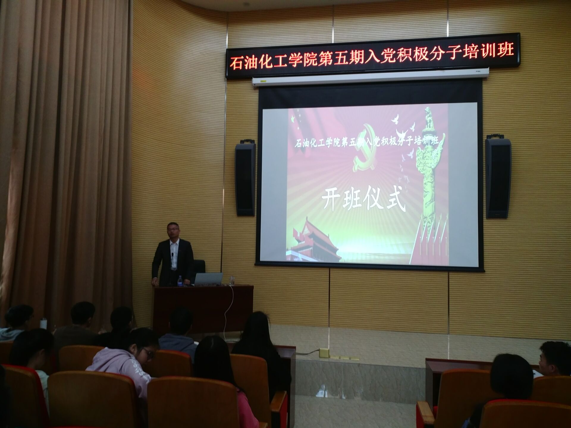 石油化工学院分党校第五期入党积极分子培训班于泉港楼报告厅正式开讲。本次仪式由石油化工学院党委副书记岳志强老师担任主讲人,石油化工学院团委书记蒋林娟老师出席了本次会议。