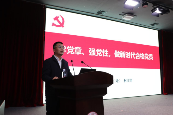 柯江锋老师围绕“总书记关于党章的重要论述”、“党章修改的六大里程碑”、“如何做合格党员”三大主题,运用形象的举例,深入浅出地向同学们介绍了为什么学党章,党章学什么,怎么学党章三个问题。柯老师还对各位发展对象提出了“知行合一”的要求,既要求同学们加强对最新修订的党章有更更具体深刻的了解,也引导大家更踊越、主动地遵守党章、贯彻党章、践行党章、维护党章,履行好党员义务、全心全意的为人民服务。最后,柯江锋老师寄语在座的发展对象们,希望各位同学能够把党章作为加强党性修养的根本标准,在新时代的道路上,继续坚定理想信念,强化使命担当,争做合格党员。