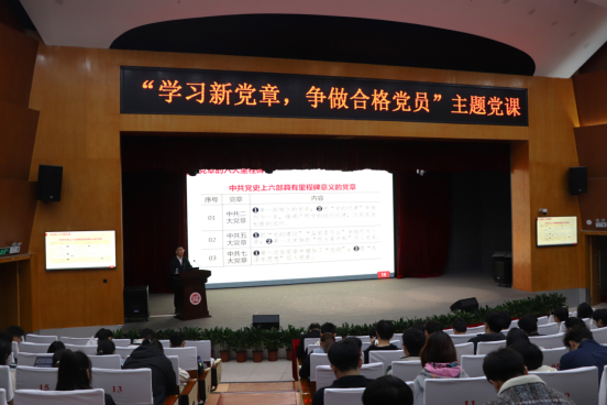为深入学习宣传贯彻党的二十大精神,抓好发展对象的思想建设,深入学习党的章程,努力争做合格党员,4月7日晚,由校党委党校、化工学院党委党校携手机关党委党校、联合教育党委党校、生工学院党委党校、化学学院党委党校和环安学院党委党校在图书馆博学厅联合开办第一期发展对象培训班教学。校学生工作部(处)副部(处)长柯江锋老师为五院发展对象开展《学习新党章,争做合格党员》党课。