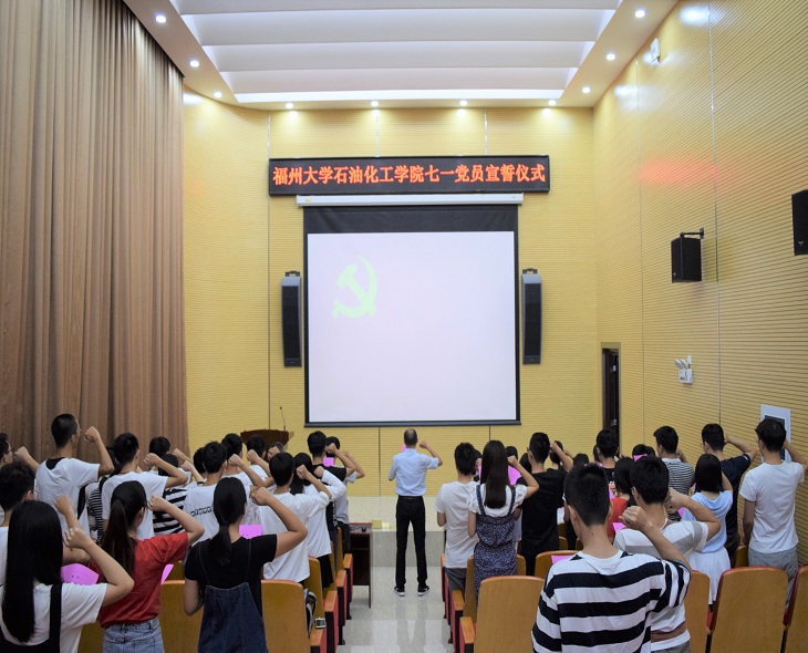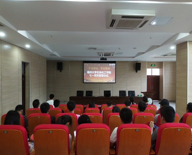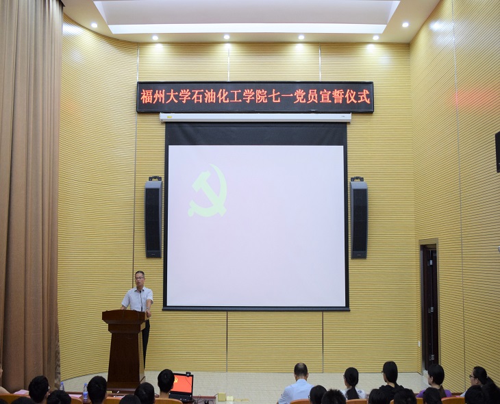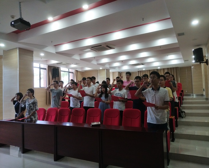 7月3日下午4点,正值中国共产党建党97周年之际,学院隆重集会举行石油化工学院2018年 新党员入党宣誓大会,为63名新党员举办入党宣誓仪式。大会分为旗山校区主会场和泉港校区分会场,通过视频会议方式在双校区同步进行宣誓仪式,院党委副书记岳志强老师、学院团委书记蒋林娟老师和团委副书记伍宇翔老师、林泉富老师参与了本次大会。