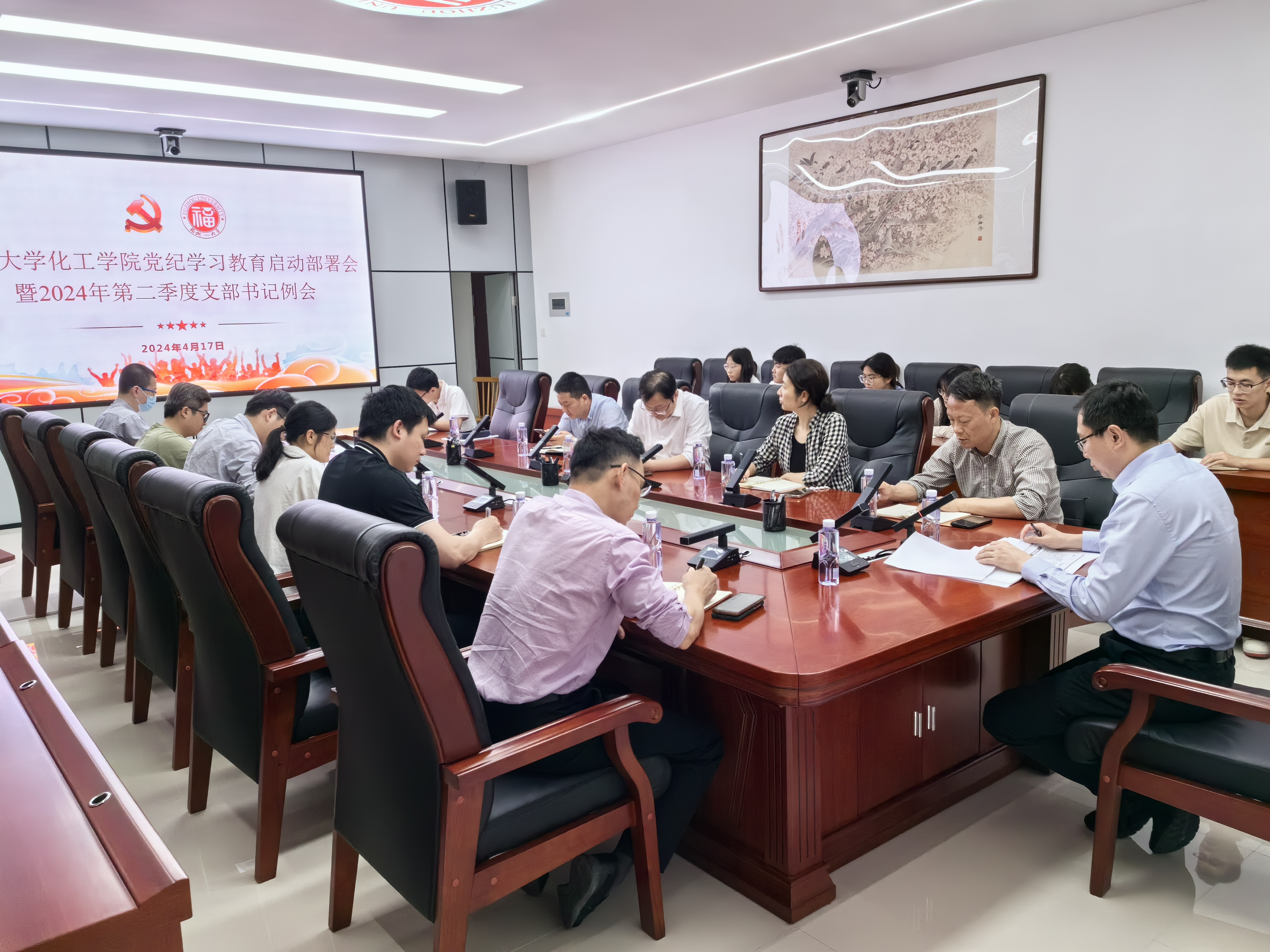 4月17日,化工学院党委组织召开党纪学习教育启动部署会暨2024年第二季度支部书记例会。会议传达了习近平总书记关于开展党纪学习教育的重要讲话精神,宣传了校党委常委会会议暨党的建设工作领导小组会议精神。学院党委按照《中共中央办公厅关于在全党开展党纪学习教育的通知》以及校党委党纪学习教育工作的具体要求,部署了学院党纪学习教育工作。学院各教工和学生党支部书记参加了此次会议。