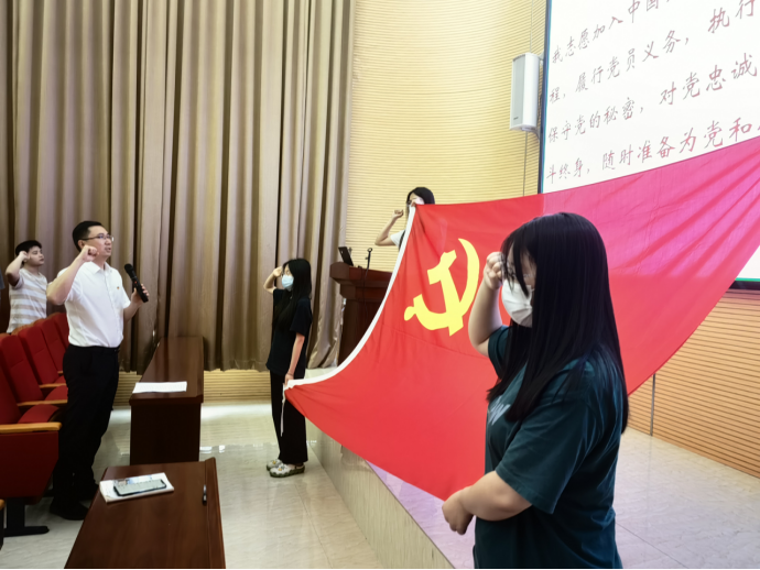 课后,林航书记带领全体毕业生党员面向鲜红的党旗,重温入党誓词。我志愿加入中国共产党……随时准备为党和人民牺牲一切,永不叛党。在铿锵有力的誓词声中,党员们再次感悟着自己入党时的初心和使命,重新接受了一次深刻的思想教育和精神洗礼。