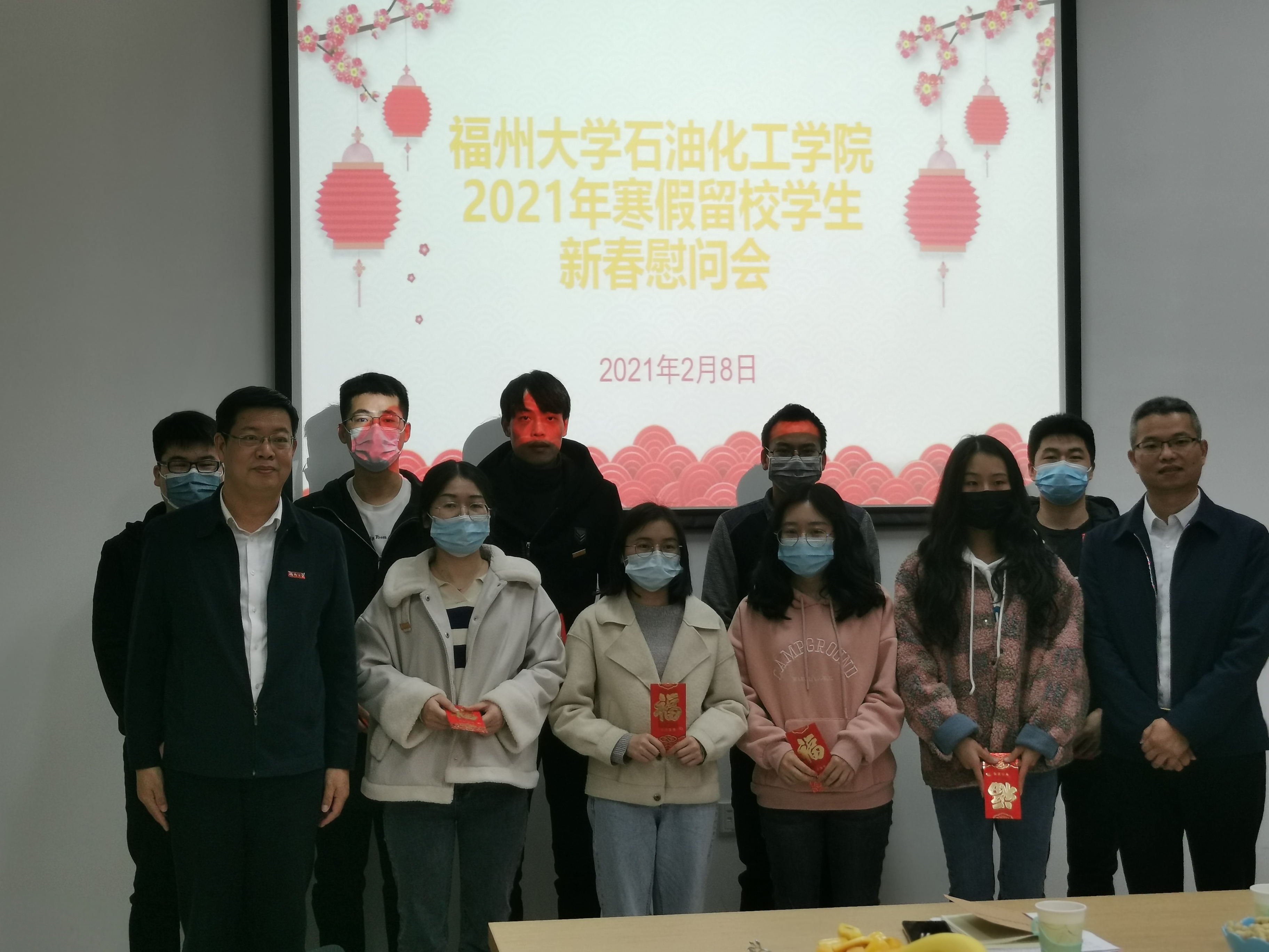 留校同学纷纷表示,非常感谢学校和学院的关心和暖心安排,虽然今年寒假没有回家,但是在福大、在石化学院感受到家的温暖。留校学生潘情同学表示:“在学院领导的关心和同学一路的陪伴,这条求学之路我们并不孤单。既然选择留下来,就不该辜负留下来的这份艰辛,我会不断努力学习,不辜负学院各位领导老师的殷切期望。”