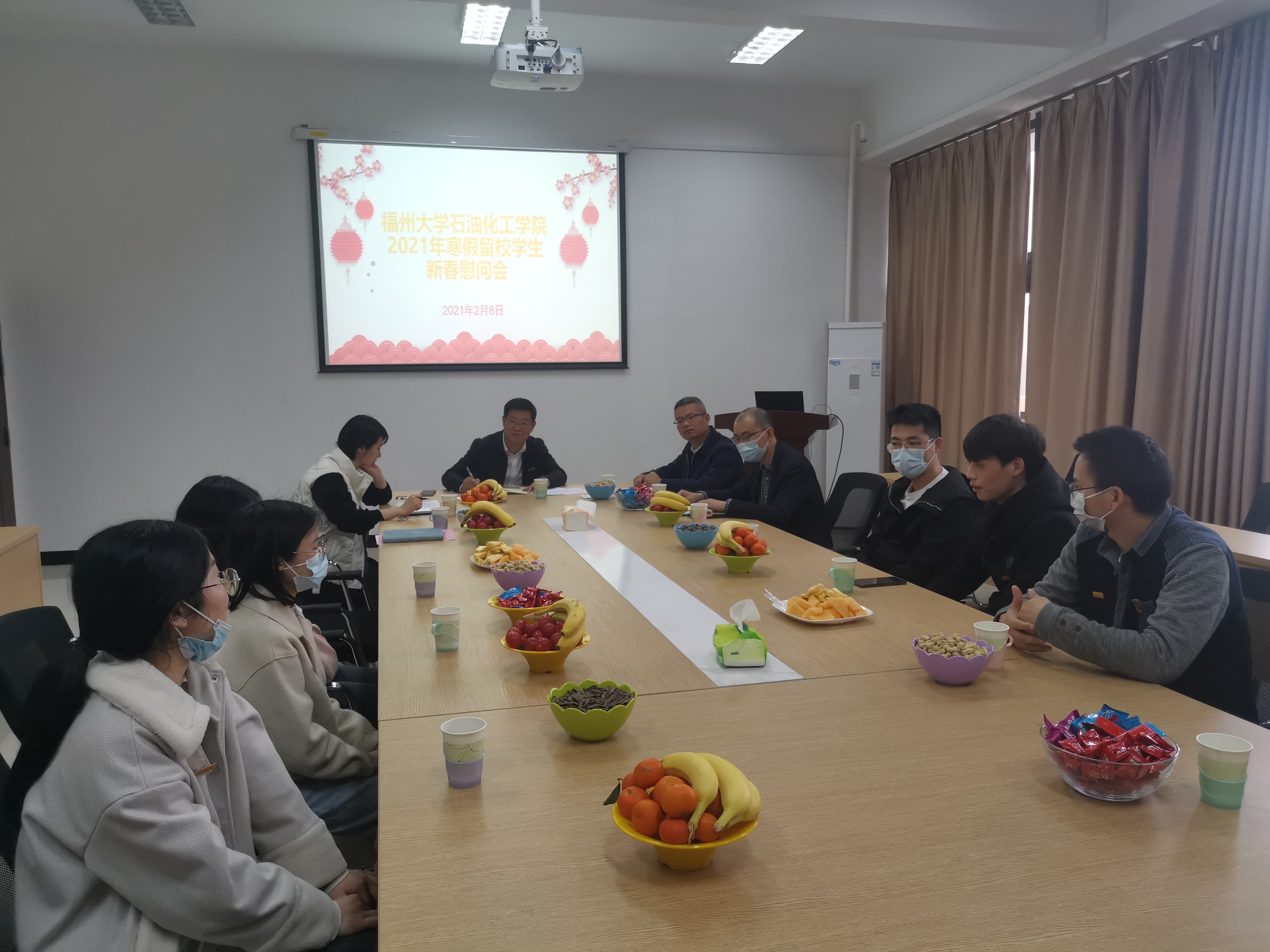 在旗山校区举行了寒假留校学生慰问会。院党委施卫华书记、院党委岳志强副书记等学院领导、辅导员代表和留校学生代表参加了本次慰问会。