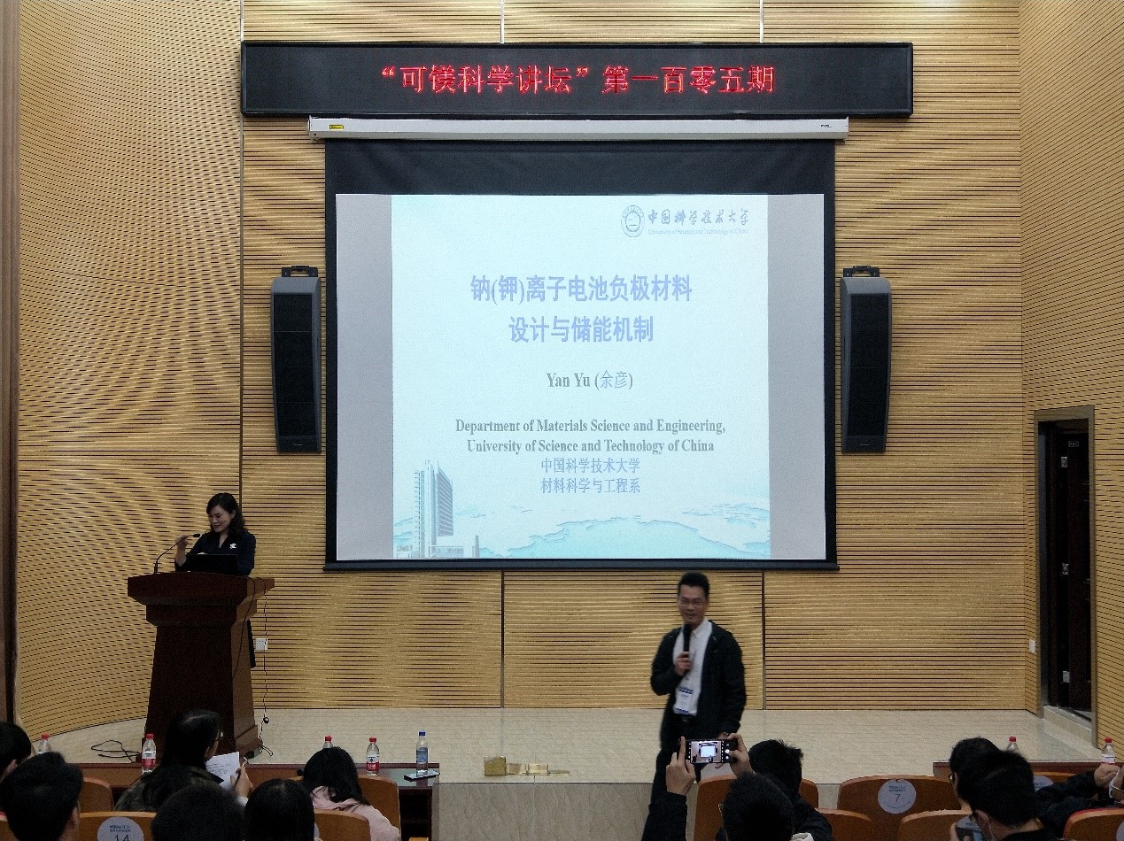 师生带来一次主题为《钠(钾)离子电池负极材料设计与储能机理》的精彩讲座,很多对本次主题有兴趣的师生前来现场听取报告。