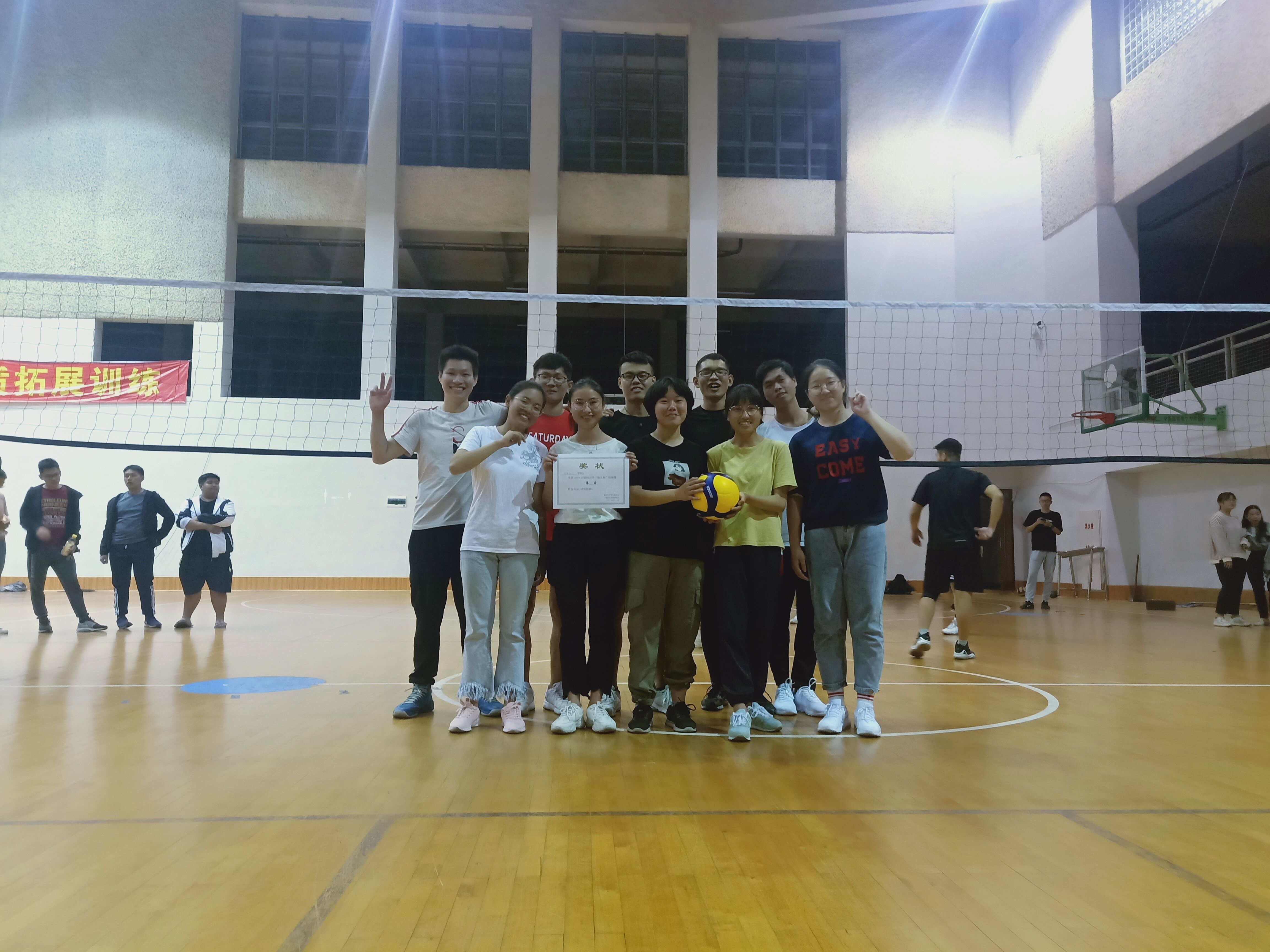 2019年11月17日19:00,91吃瓜 新生排球赛决赛在风雨操场举行,91吃瓜 新生排球队经过数日的角逐,一路披荆斩棘,来到了总决赛。最后他们不负期望,凭借高超的战术及优秀的团队协作能力以3:0战胜了土木学院新生排球队,夺得了本次比赛的总冠军。
