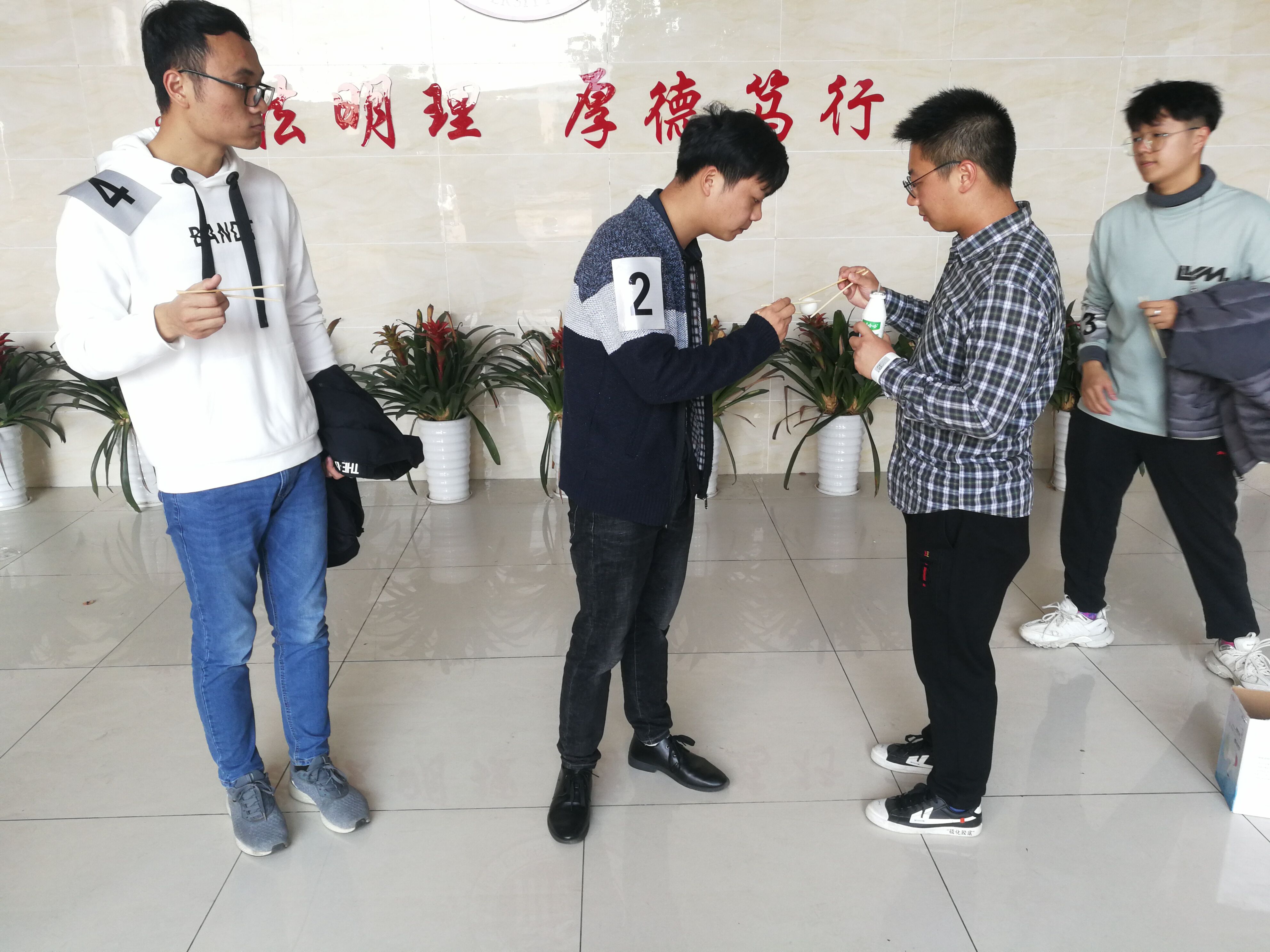 图三 同学们正在小心翼翼的传递乒乓球