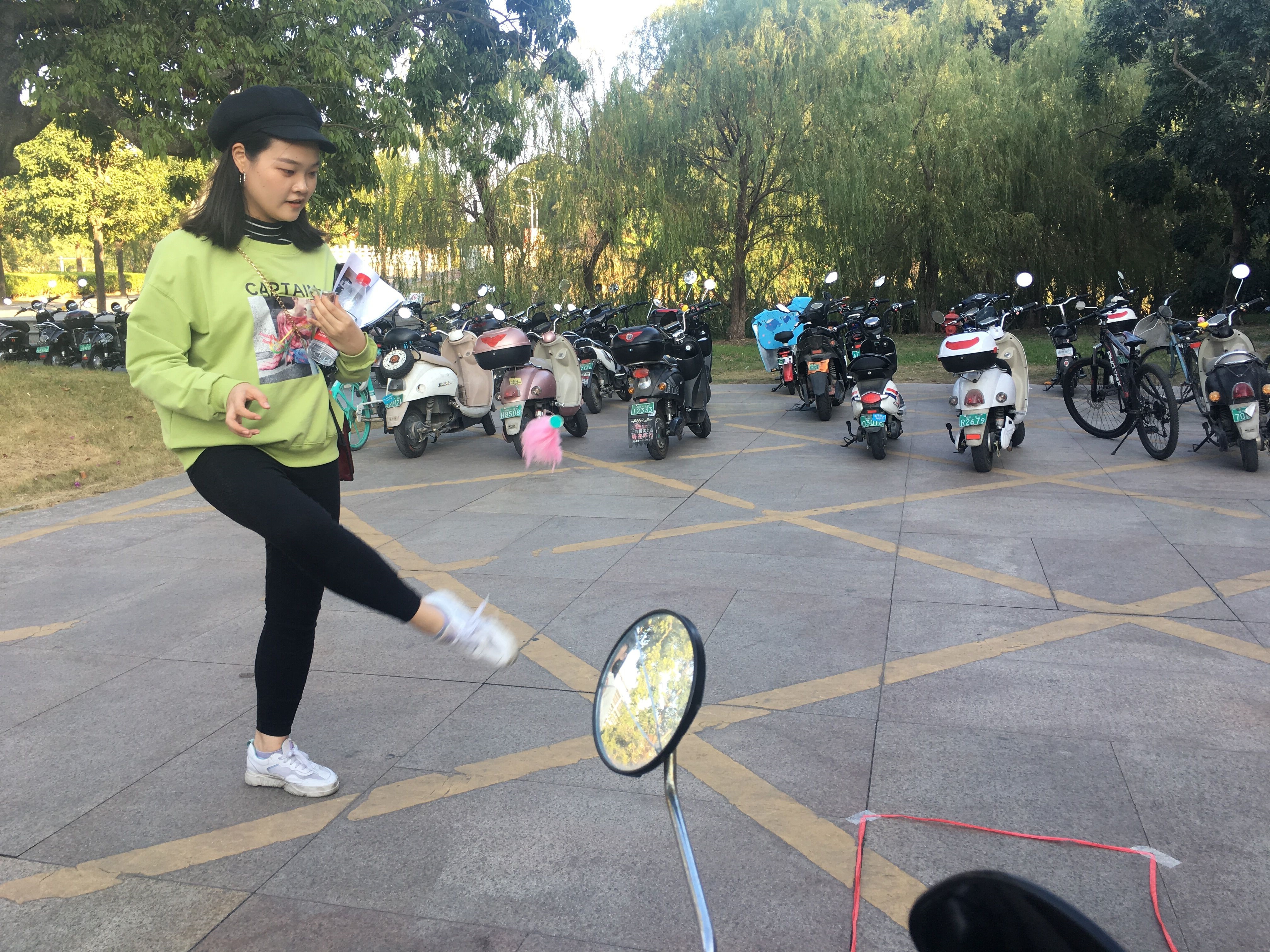 图二 同学正努力把毽子踢进洞里