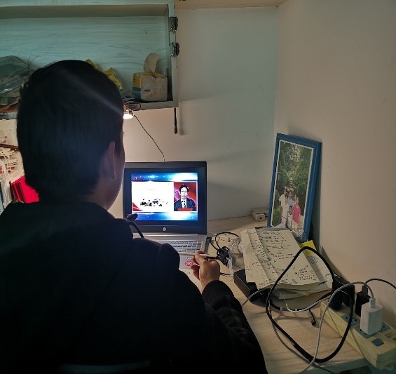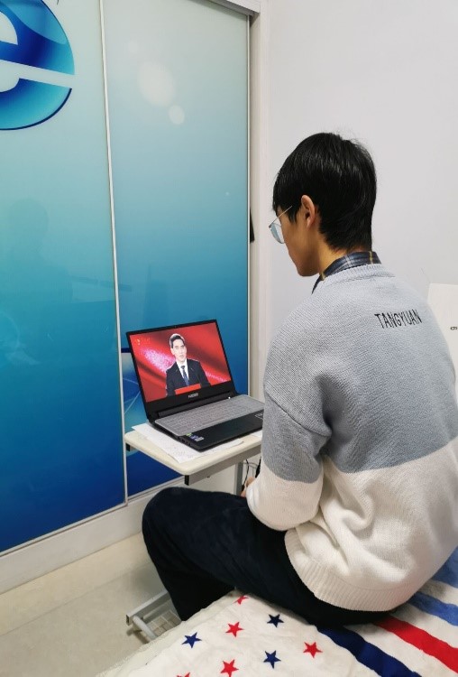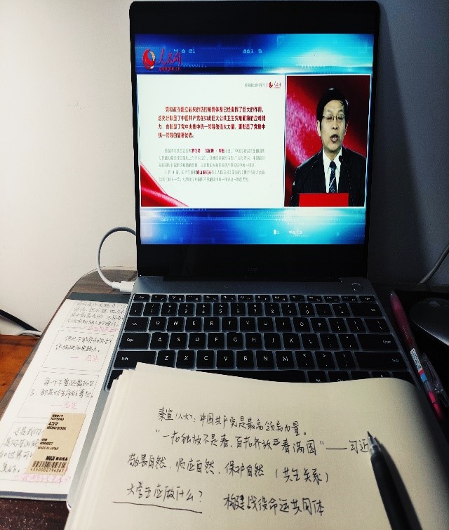 石化学院19级学生们认真地观看直播,并被疫情防控工作中涌现的感人案例深深打动: