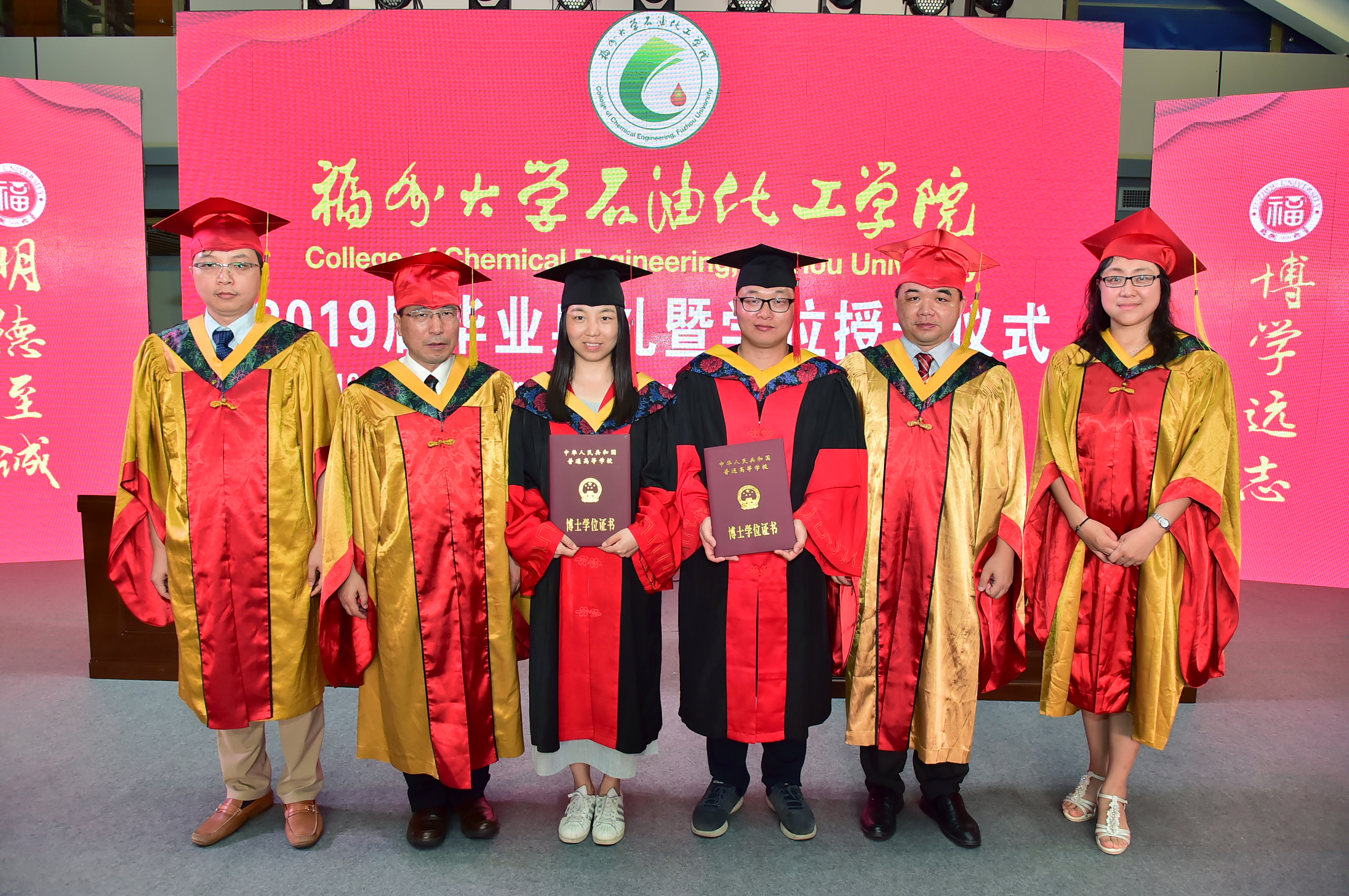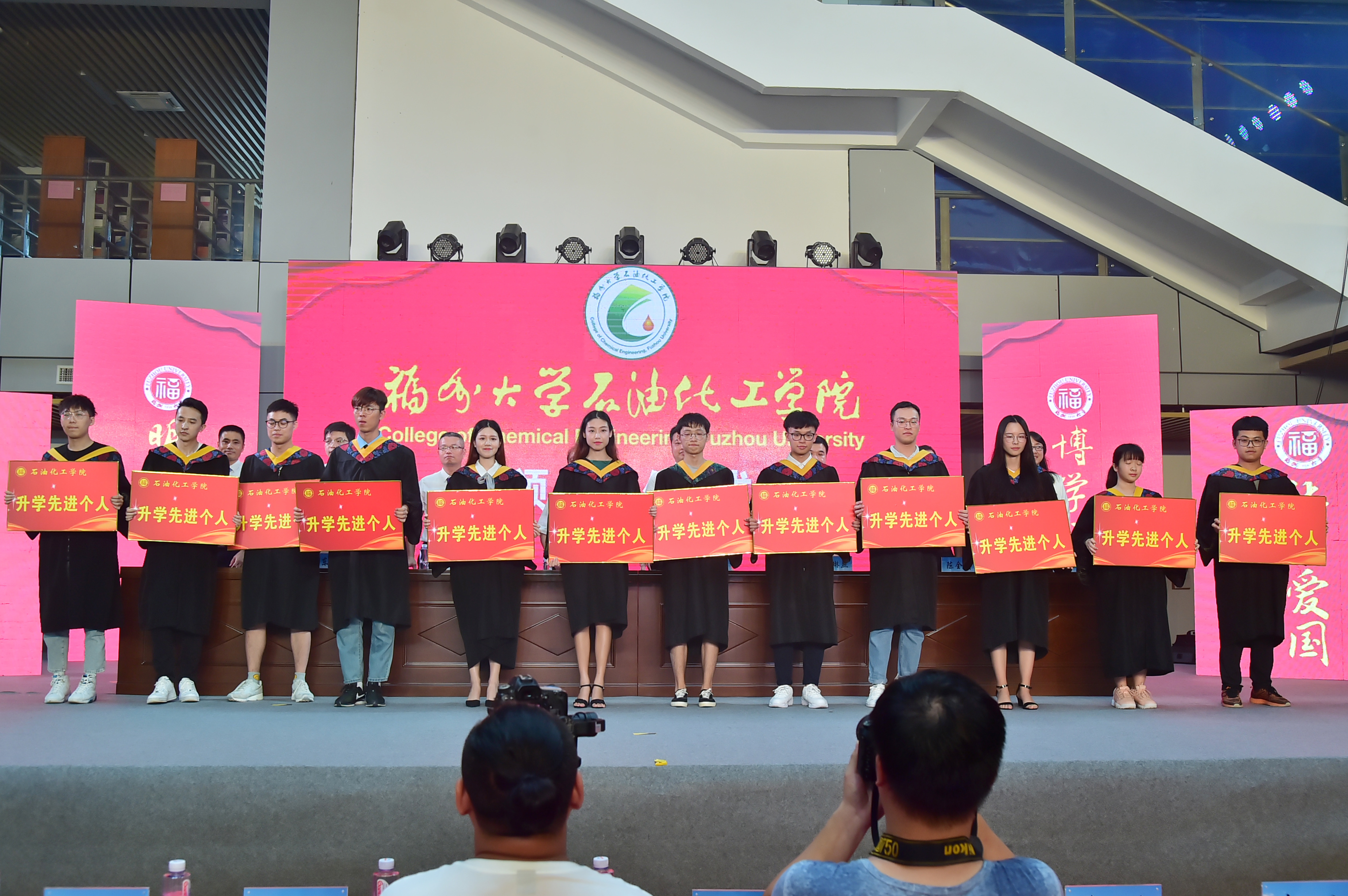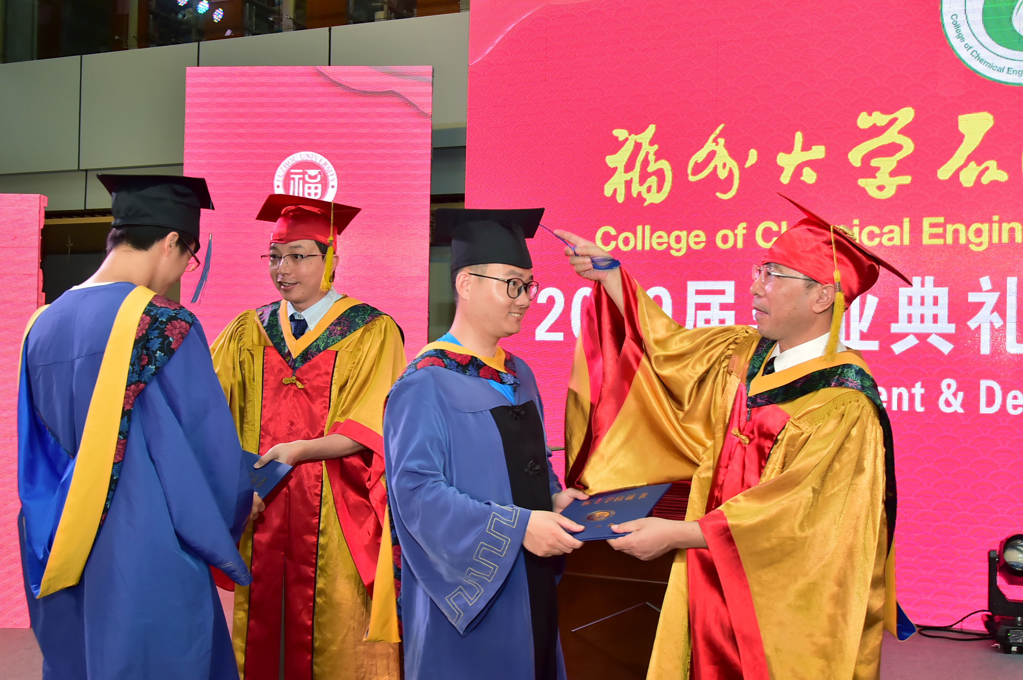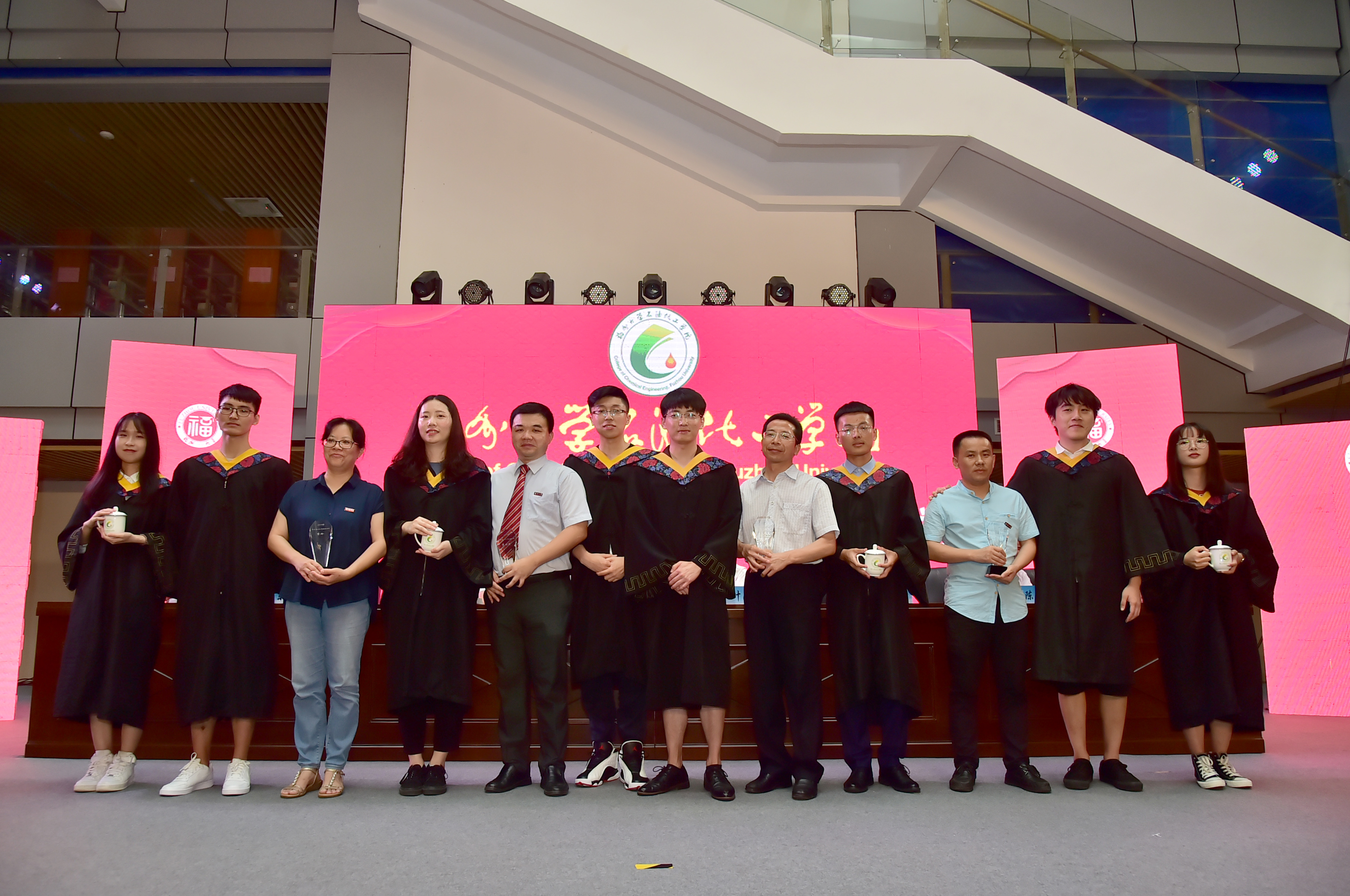 石油化工学院2019届毕业典礼暨学位授予仪式在泉港校区图书馆大厅隆重举办。会议分为“离歌奏响·硕果丰”、“前程似锦·恩情浓”、“立德树人·育英才”、“低语叮咛·候佳音”四个篇章。