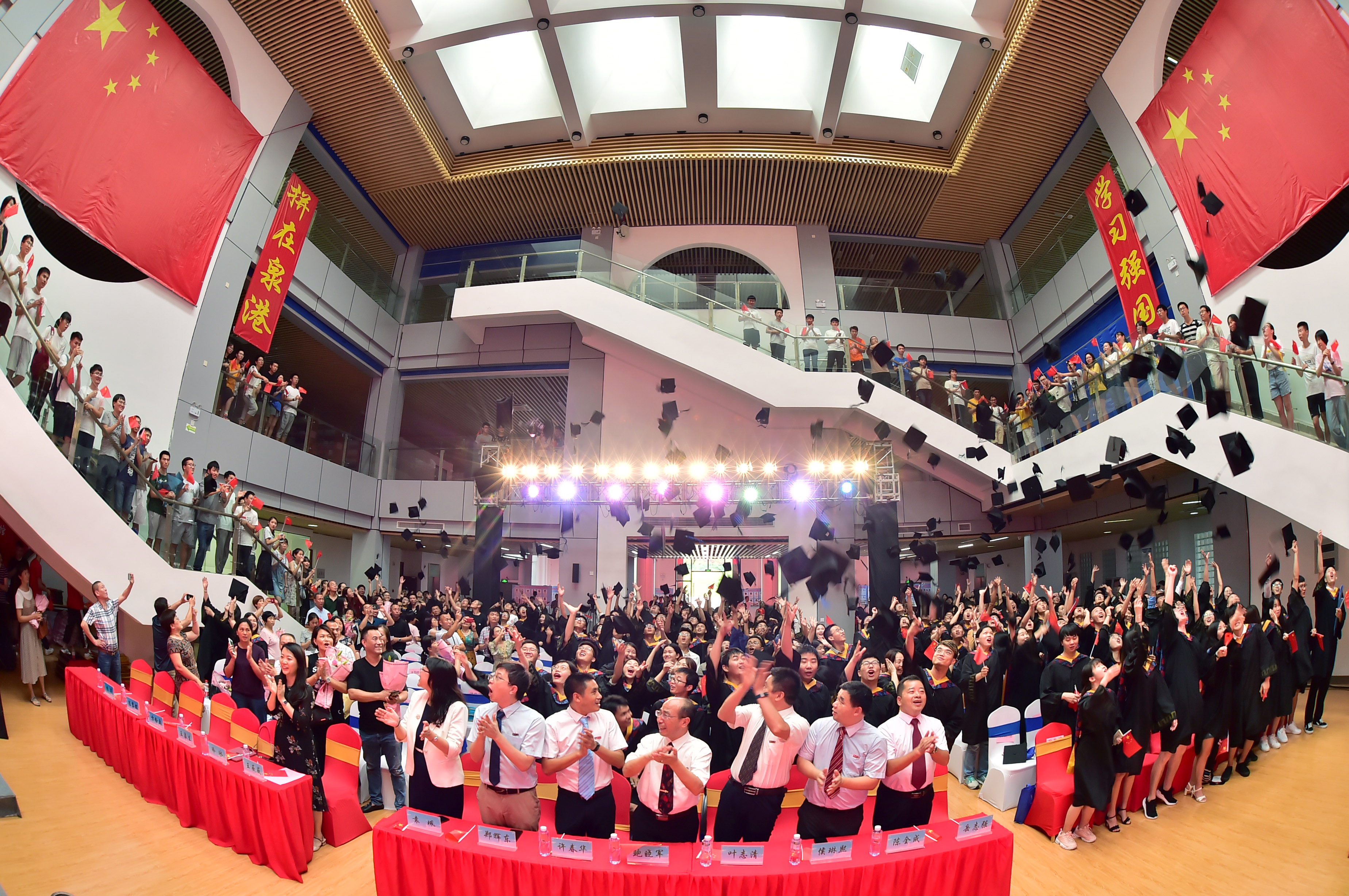 侯琳熙教授希望同学们力行求是,开拓创新,“旗山峰回西禅月,泉港湾扬石化风”——很好的诠释了2019届毕业生的大学四年。全体毕业生一次次雷鸣般的掌声表达了他们对母校的眷恋和对未来的信心。