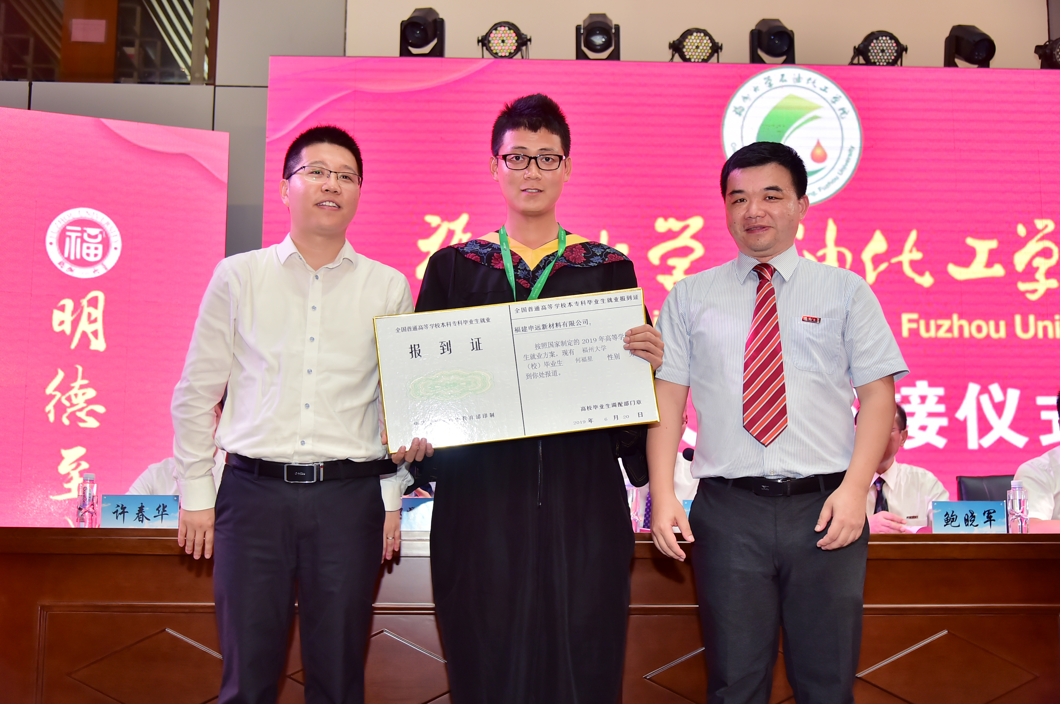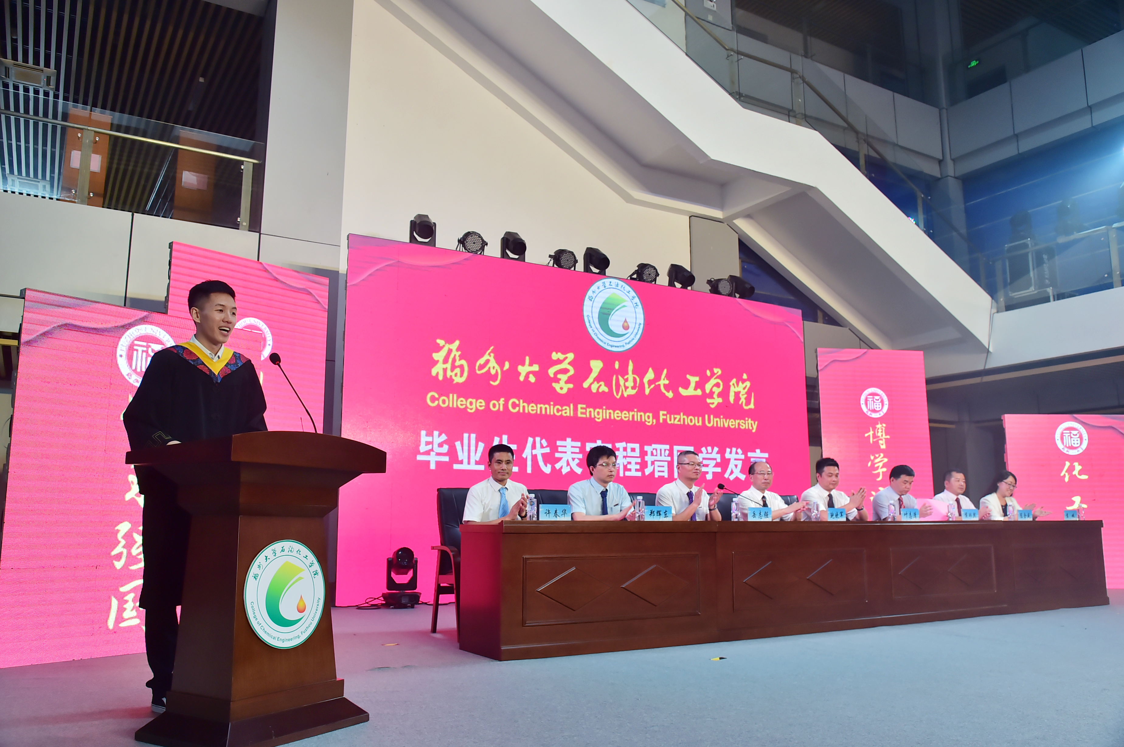 及石油化工学院一个又一个奇迹,也因此收获一份份真挚的友谊。“石油化工,迈向成功”他将满怀着曾经在大学中热爱的体育运动与拼搏读书一般,不负母校期望,向远方继续前行、高歌猛进。所有毕业生们定会秉持“明德至诚,博学远志”的校训,传承福大“三种精神”,踏上新的征途。最后,他对母校、老师和同学们表示由衷的祝福。