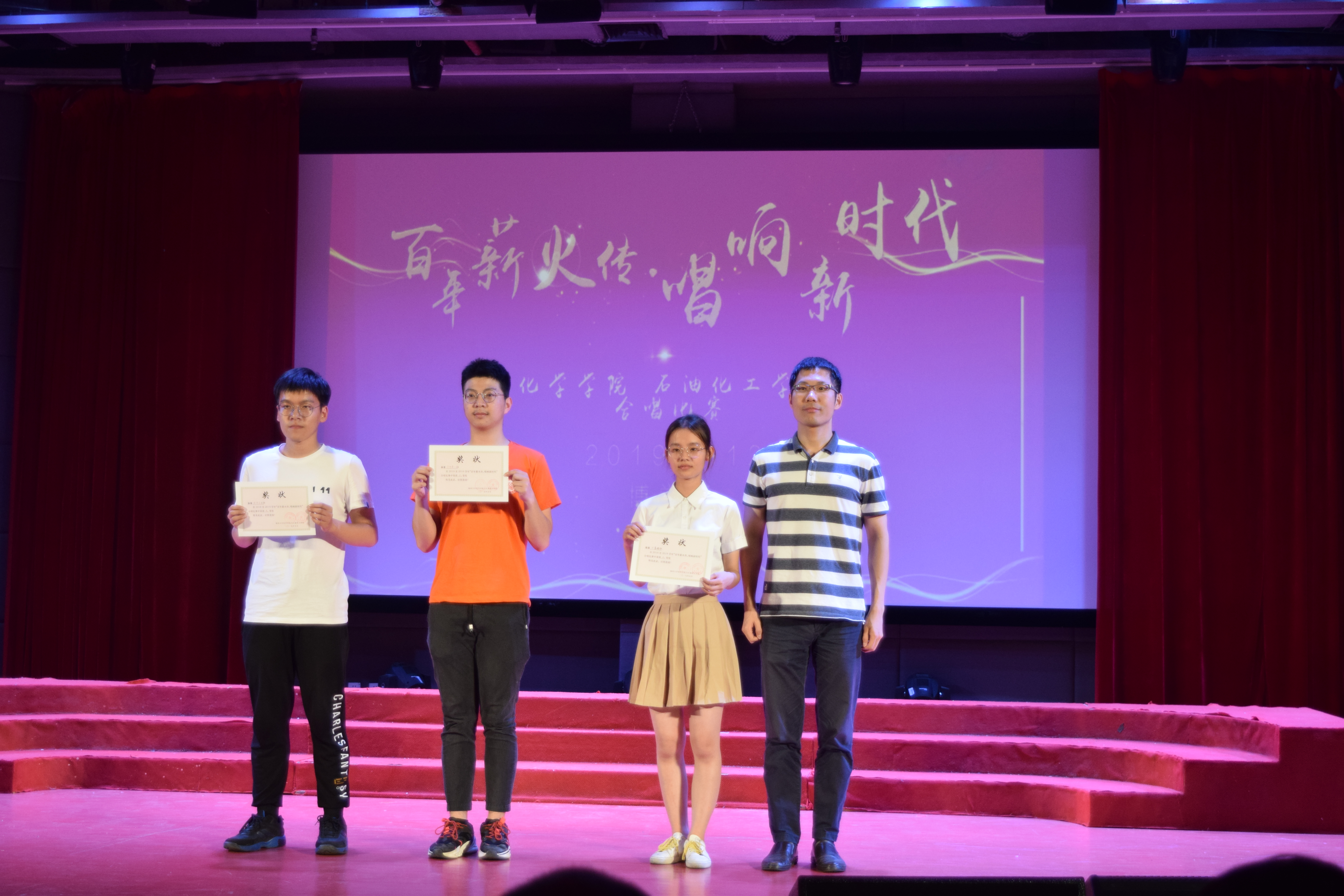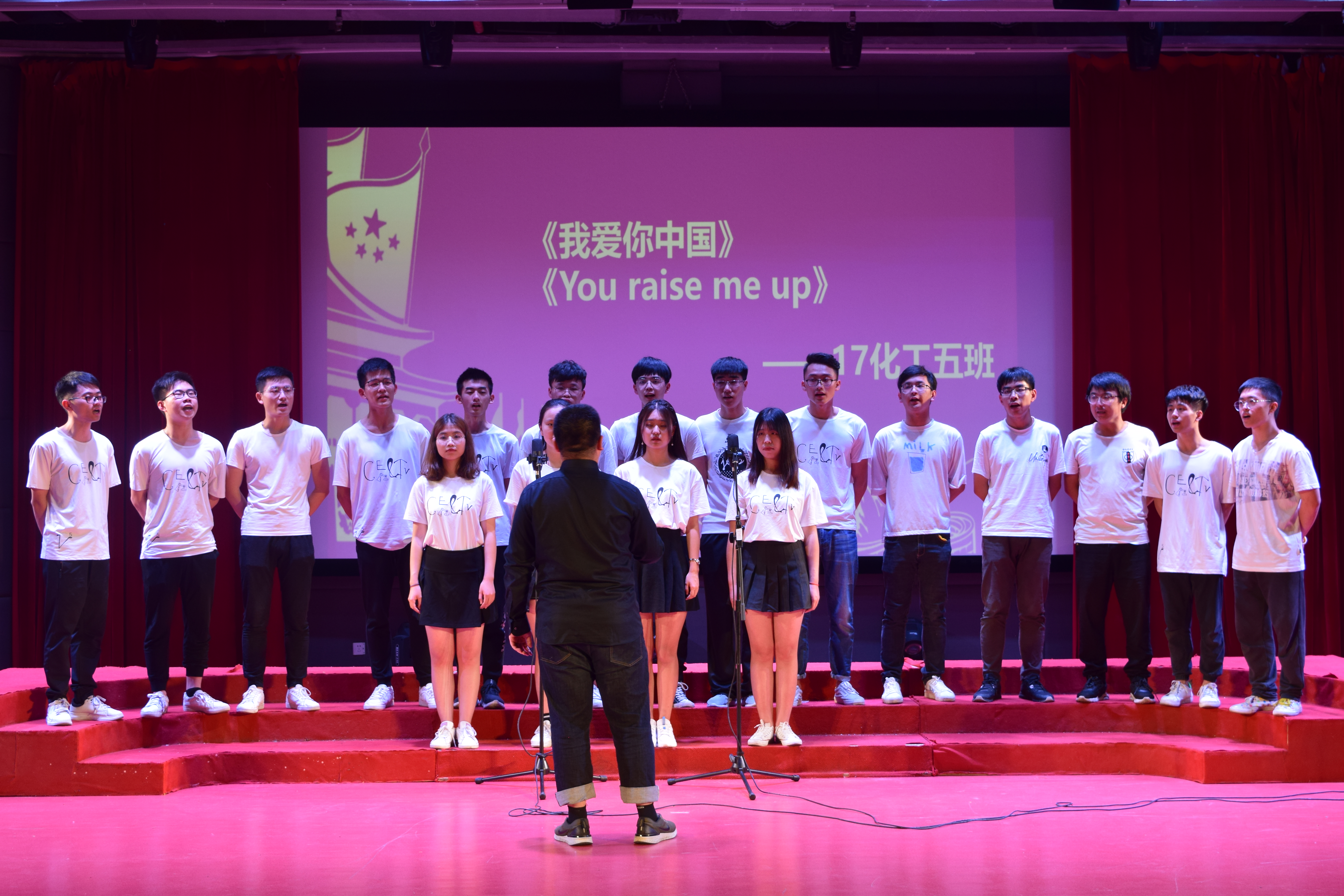 一曲《天耀中华》,17级化工4班的学子们在激昂的歌声表达出对祖国的声声眷恋。少年是诗,华章宏赋书人生辉煌;青年是歌,交融混响谱志气荣光。17级化工5班为大家带来《我爱你中国》+《You rise me up》将那血浓于水的情感表现出来,我爱你,我的母亲,我爱你,中国!而18级化工5班带来的歌曲《没有什么不同》+《黄河大合唱》和18级化工4班带来的合唱歌曲《明天你好》,则将青年们志强不息、奋勇拼搏的精神展现出来,重温经曲,忆苦思甜,让我们用嘹亮的号角唱响无悔的青春!
