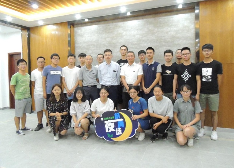 此次“前黄夜话”主题为“新校区、新征程”,邀请到的是石油化工学院副院长郑辉东副教授作为嘉宾,院党委副书记岳志强副教授、团委书记伍宇翔、辅导员林泉富老师也参与了本次活动。