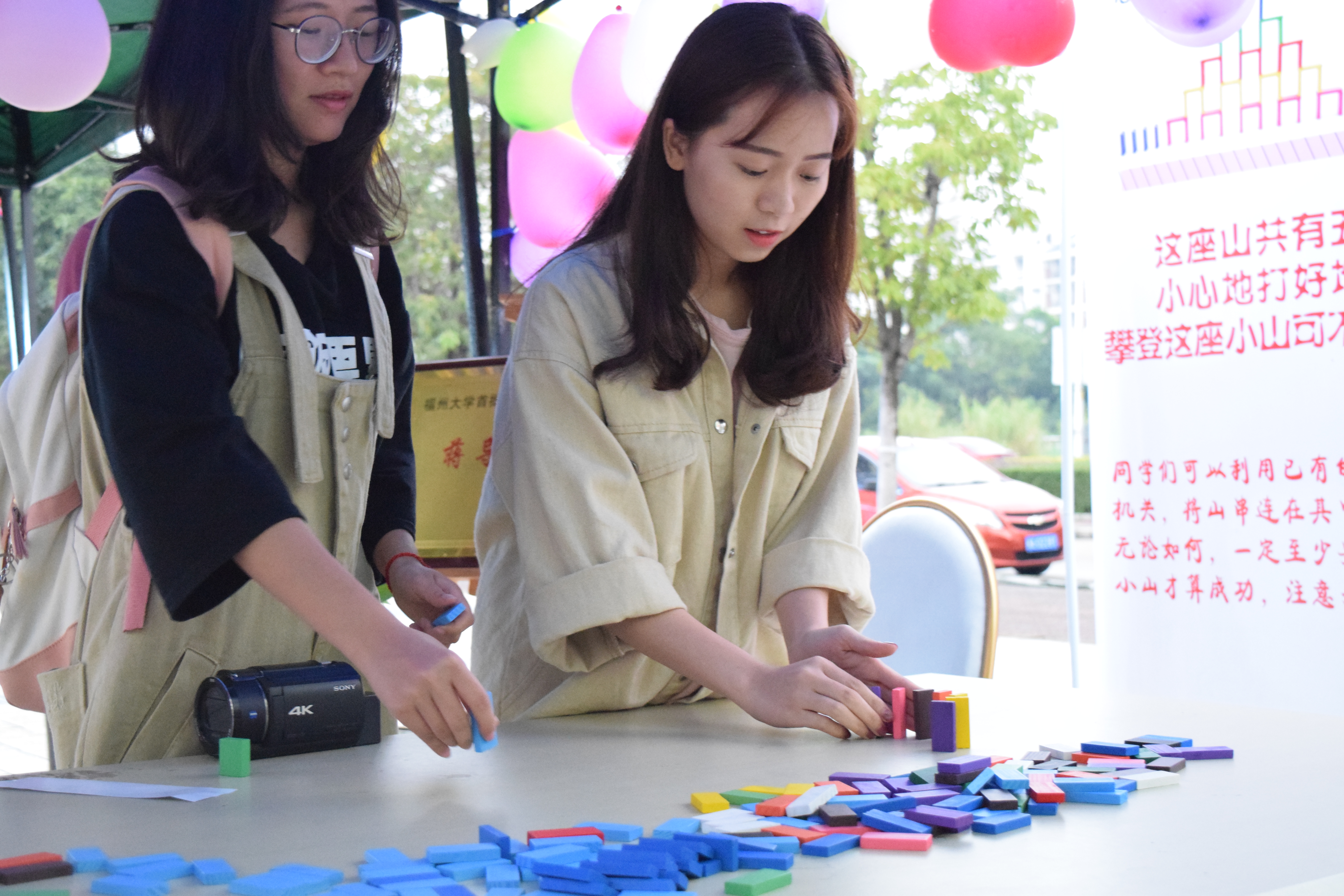 在活动中,我们将蒋导工作室从室内搬到了现场,让同学们切身体会到蒋导工作室的温馨感,同样,我们还设立了多米诺骨牌的互动环节,旨在让同学们在摆放多米诺的过程中做到心如止水,全神贯注,着眼于眼前的搭建,将其他烦恼和不愉快全都抛之脑后。当多米诺骨牌最后被推倒的那一刻,同学们将会获得满满的成就感与释放感。同时,与陌生人在同一张桌子上搭建多米诺骨牌,也能变成一次“特殊”的邂逅。在活动中,石化展区的精心布置吸引了许多同学驻足,或是认真阅读心理服务宣传,或是参与多米诺骨牌的互动。在现场,工作人员还与几位参与互动的同学聊到了在搭建多米诺过程中的心理感受,有的人会感觉压力很大,有的人感觉专注于多米诺很轻松,还有的人感觉听到自己搭的多米诺在搭好后倒下去的声音听着很“悦耳”,同学们都在为本次双十心理“汇”活动点赞,表示在在本次活动中,他们学到了很多心理方面的知识,知道了原来学校与学院都在关注着每一位同学的心理健康状况,并表示自己愿意参与到帮助保护周边同学心理健康的工作中。