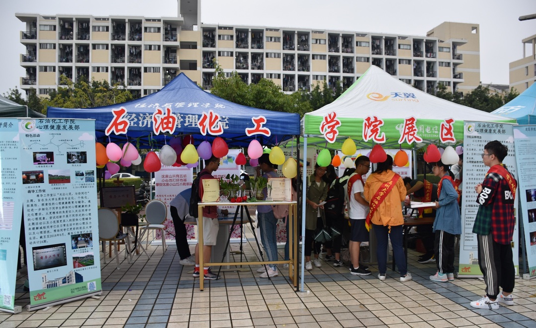 10.10日下午四点,由学生工作处主办的首届双十“心理汇”活动在青春广场正式拉开帷幕。在活动中,我们石油化工学院展区展示了学院的心理服务资源,心理服务工作,常规活动以及获得的奖项等等,充分展示了石化学院心理健康发展部的特色以及工作成果。