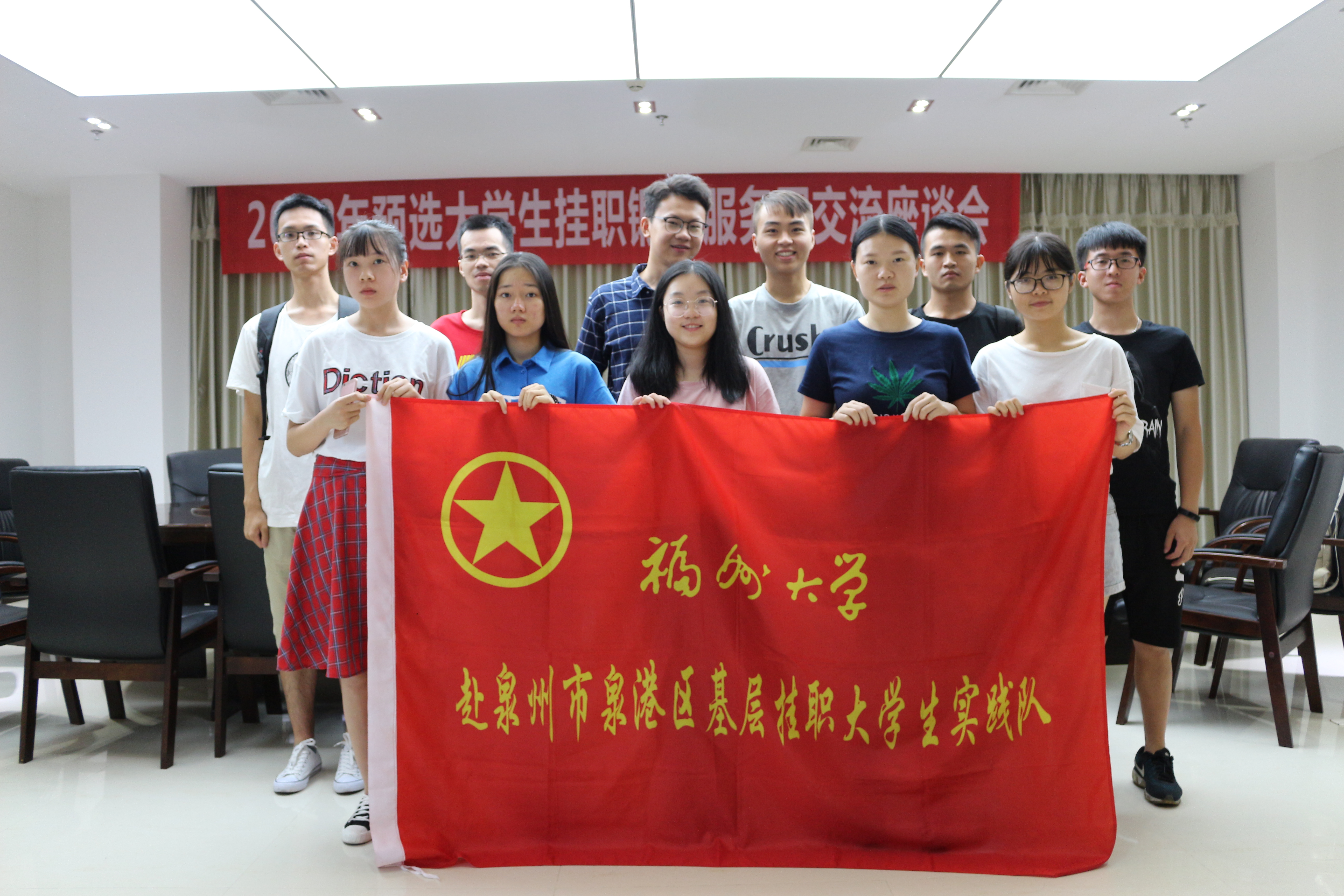 石油化工学院赴泉州市泉港区基层挂职实践队的挂职锻炼活动将于2018年8月陆续结束,为全面了解挂职大学生挂职期间的表现情况,8月15日,由团区委组织举办的“2018年预选大学生挂职锻炼服务团交流座谈会”在泉港区文化中心举行