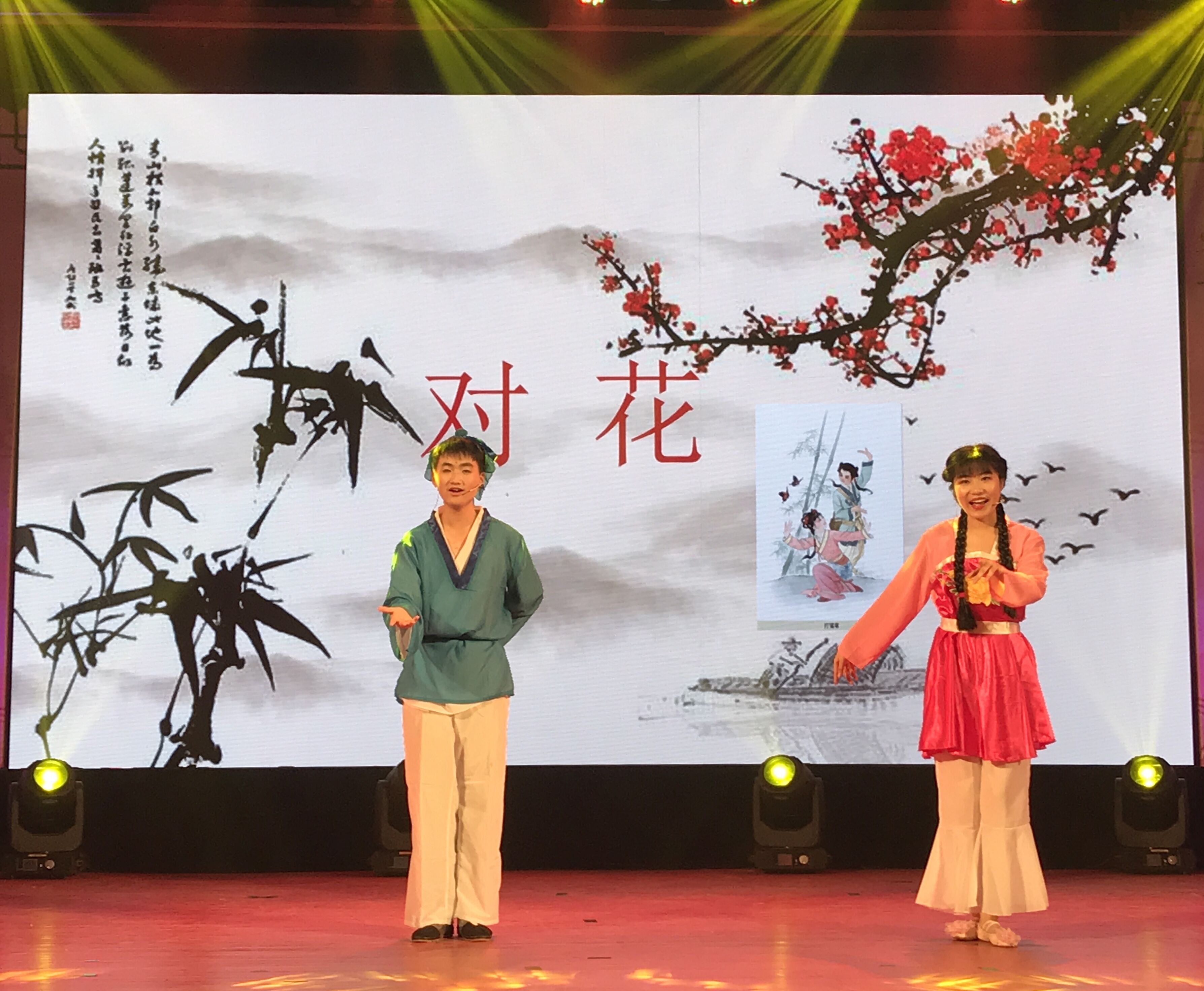 学生吴昭兴和法学院学生谢晨怡共同演绎的黄梅戏《对花》,在众多参赛队伍中脱颖而出,夺得季军。