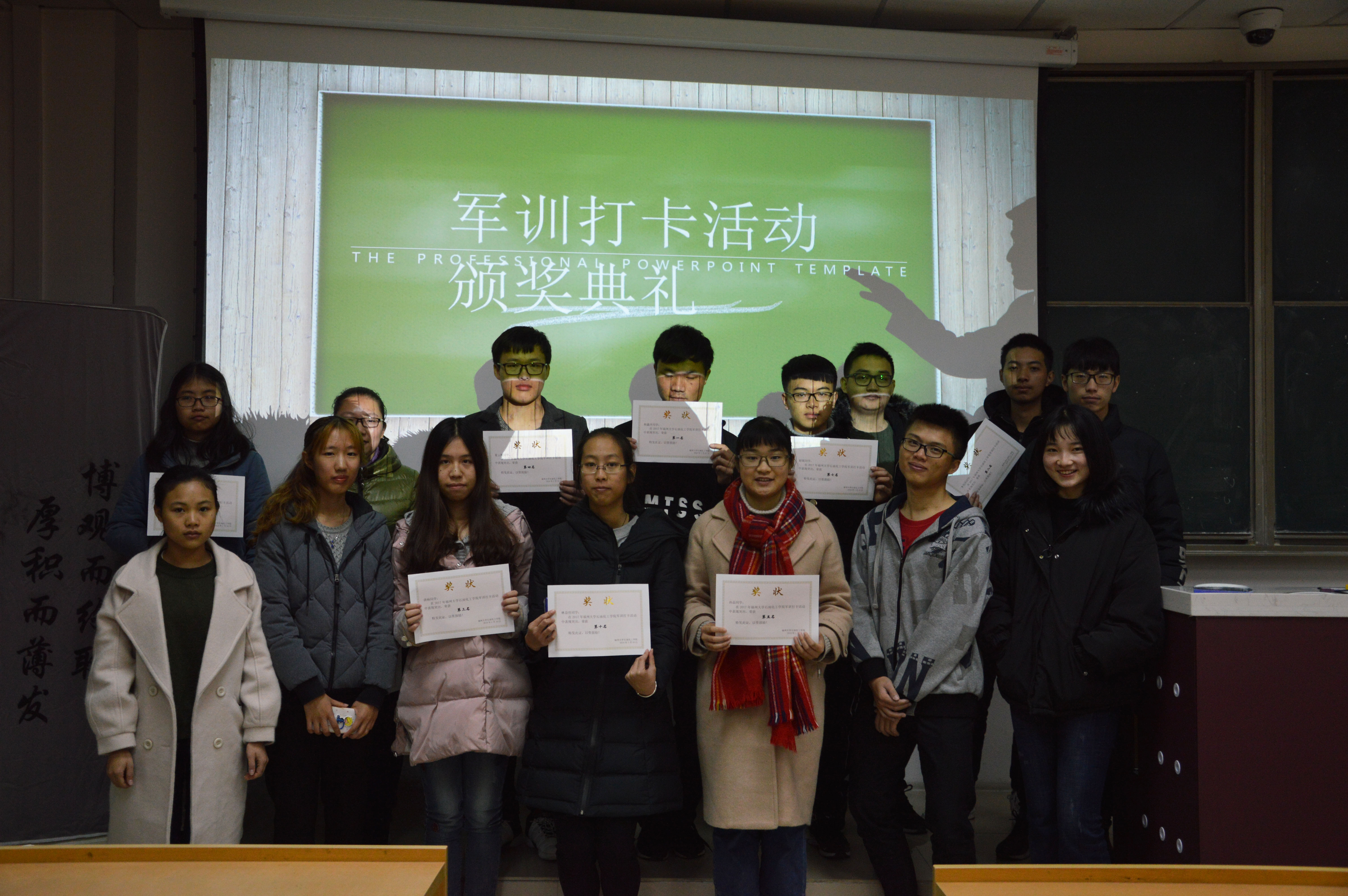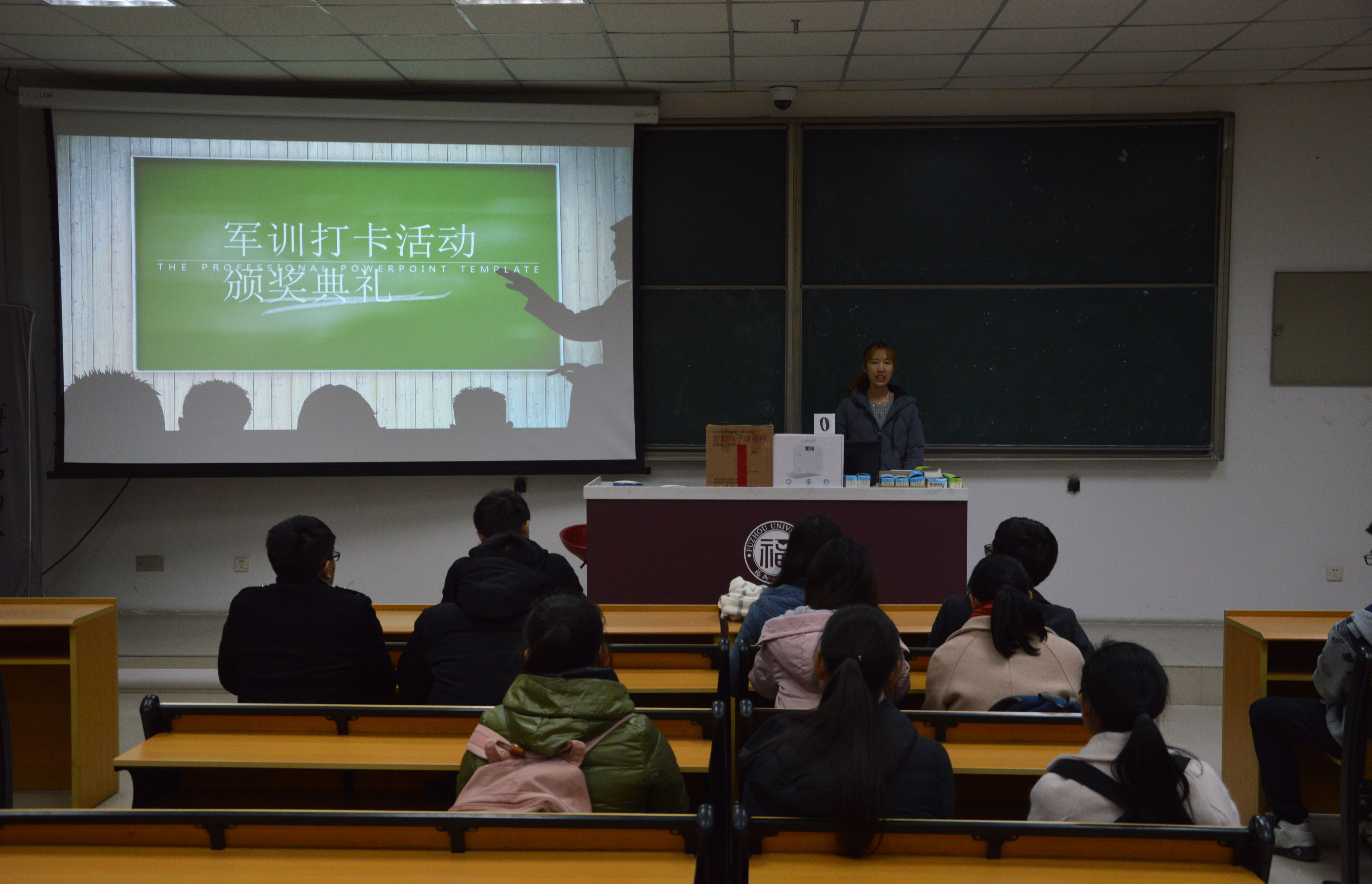 1月11日晚6点,由石油化工学院主办、石化学院记者团承办的“14天军训打卡计划”活动颁奖仪式于西二502顺利举行,至此,“14天军训打卡计划”活动落下圆满帷幕。