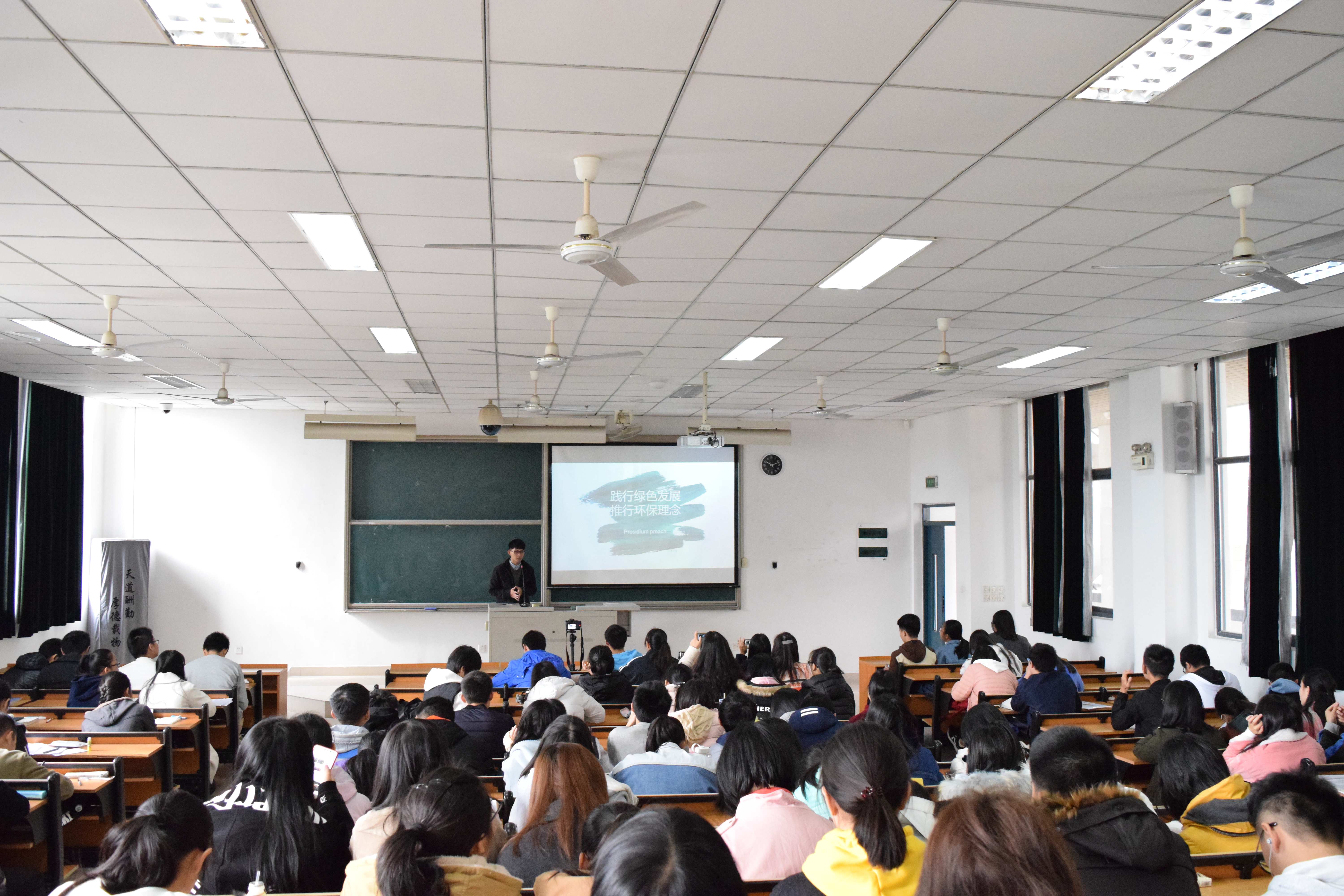 专业角度给大家展示了化学能源污染、核能污染的危害;另一方面,就“环保科技及创新就业”,从我国环境问题出发,讲解了绿色发展与环境保护的重要性及其对实现中华民族伟大复兴的中国梦的现实意义,接着又从“化学环保科技新技术”、“创新串联技术与应用”、“创业该如何实际操作”四个方面进行了宣讲,给同学们进行了详细讲解。现场宣讲气氛严肃而不失活泼,参与的同学们都沉浸在宣讲的内容中,深刻的领悟着新的知识。