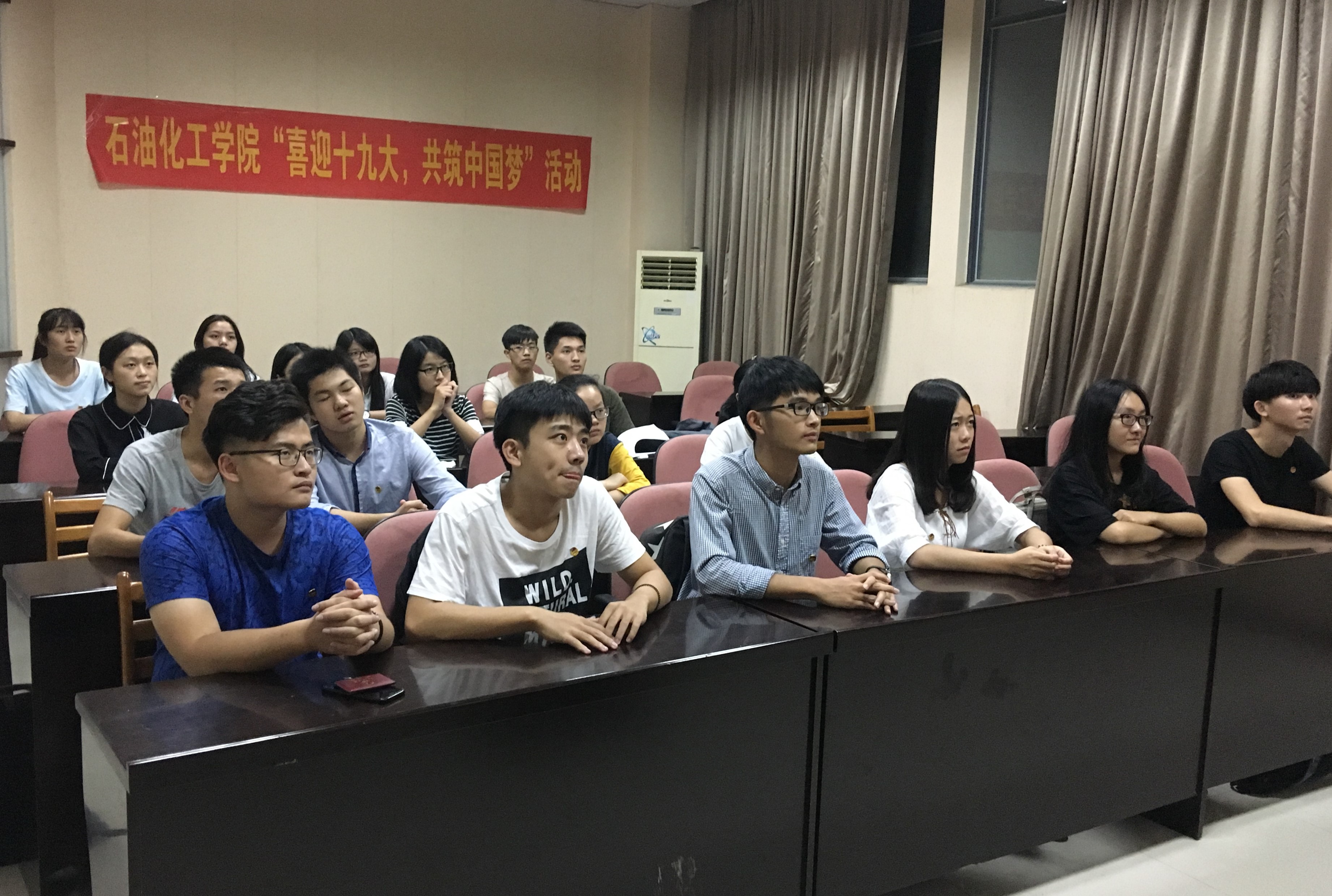 同学们进一步了解到过去五年里我国的快速发展以及我党十九大的精神所在,希望他们能不忘初心,牢记使命,做一个无畏的石化学子,以实现中国梦共同努力。