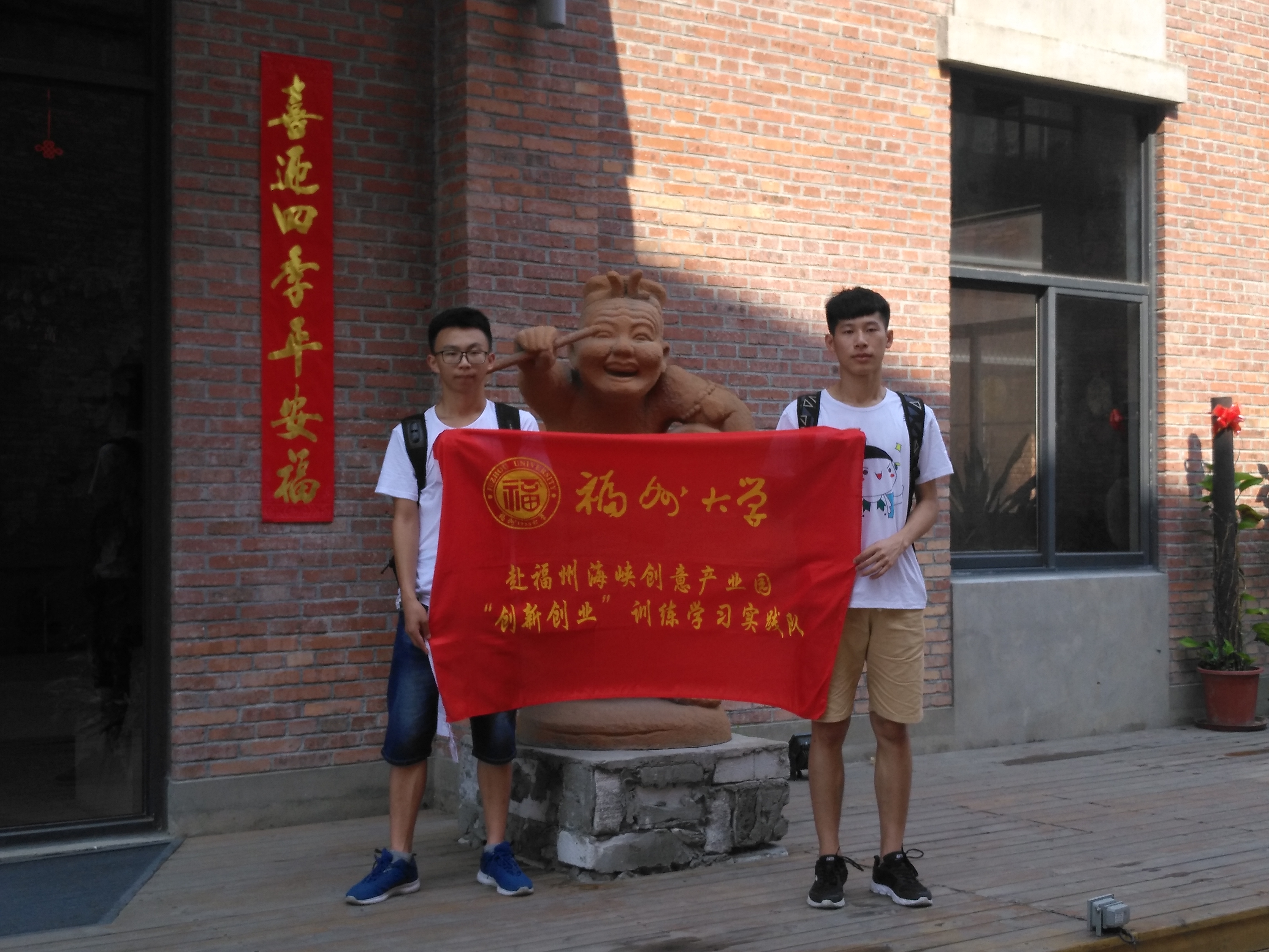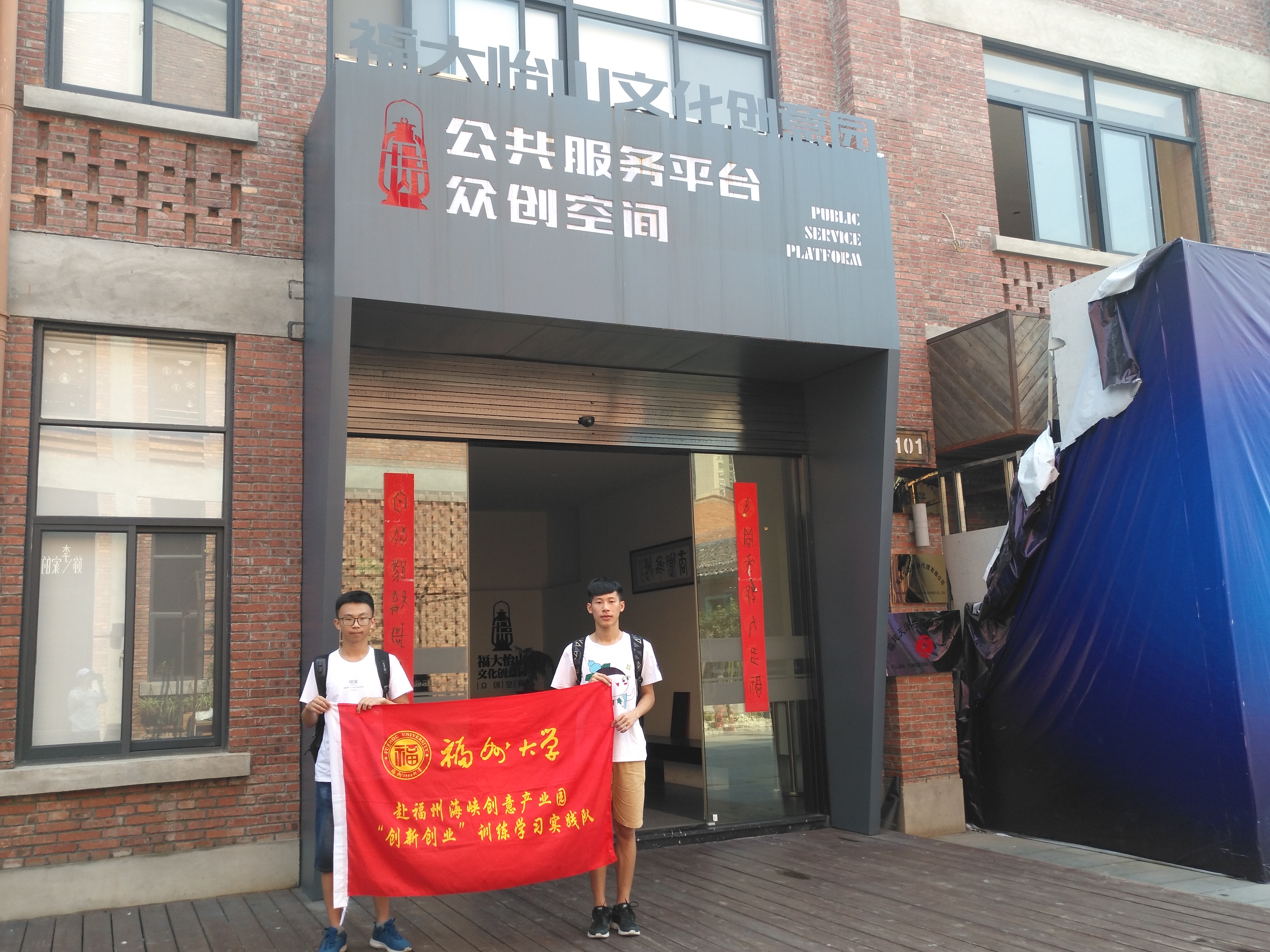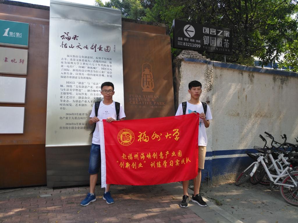 无畏四大火炉之一福州的炎炎烈日,实践队员们来到了福州怡山文化创意园区,该园区是由福州第一家具厂原有厂房进行改造修缮,因此与我们平日见到的商业区有着极大的差别。一进门我们便被创业园门旁的壁画给吸引。壁画上再现了当时工人们在厂里机械前工作的场景,为着创新而不断努力。进园后发现许多别具一格的雕塑以及绘画,一家家以创新为主题装饰的店铺令人叹为观止。