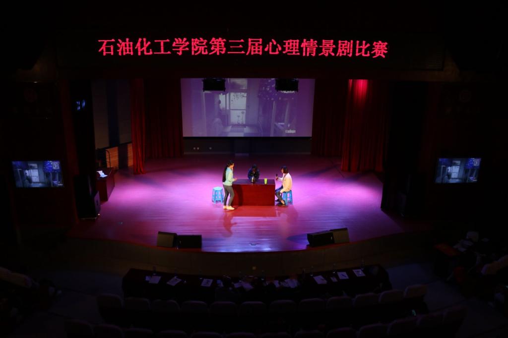 4月15日19点,石油化工学院第三届心理情景剧决赛于博学厅正式开展。活动旨在相约心灵在现实与虚幻间感受心灵触碰的温暖。活动邀请校心理健康教育与指导中心主任潘曦老师,学院团委书记蒋林娟老师,学院团委副书记伍宇翔老师,学院2016级辅导员陈艺全老师,同时观看本场比赛的嘉宾还有主席团、部长团的成员以及各学院的心理部的部长,本次活动由陈煜、赵炫恺主持。