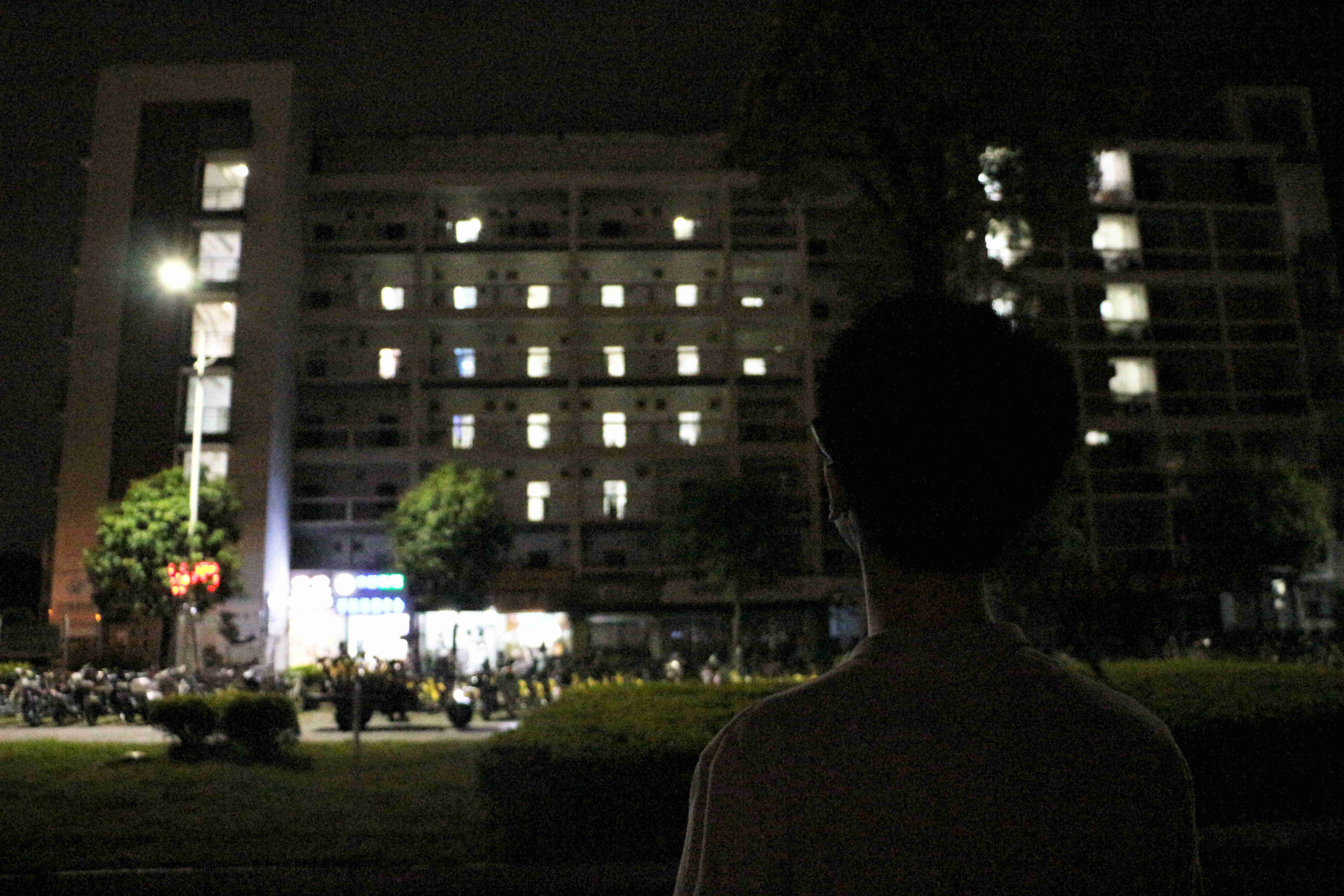 当晚八点,观众陆续入场。随着黄导一声“开始”,25号楼齐齐亮灯,呈现出"I ♥ U"的造型。在520浪漫氛围之下,不少同学纷纷拍照留念。黄导说:“恰逢5.20,我们学院15级的同学要离开旗山,远赴泉港,这次活动是他们对旗山的不舍,更多的也是对泉港新生活憧憬向往的体现。活动从提出到实施不到48个小时,最后效果不错,同学们也积极参与,我感到很欣慰。”