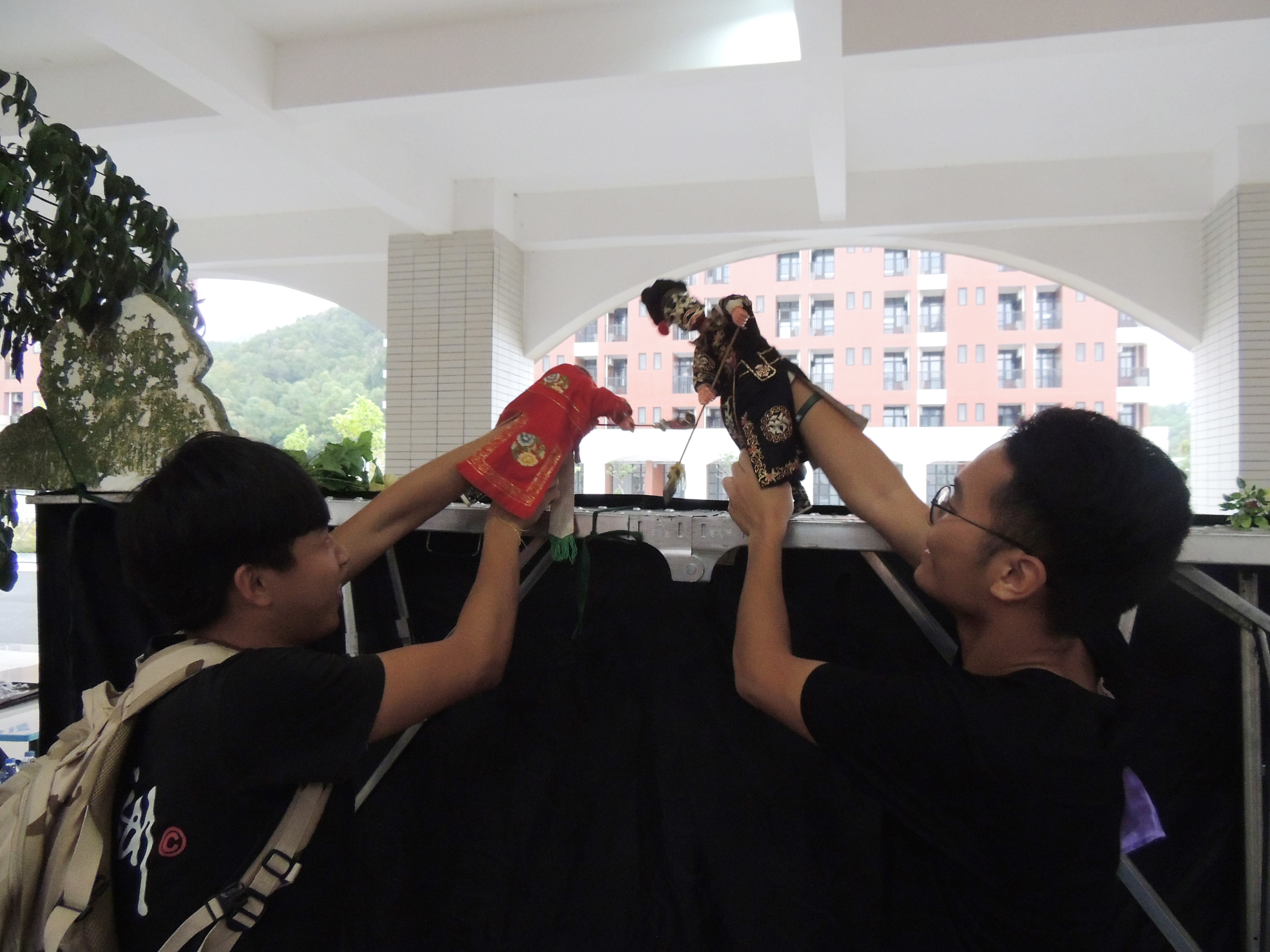 于泉港校区食堂外举办了“传统文化进高校”活动。本次活动邀请了泉港区掌中木偶艺术团。