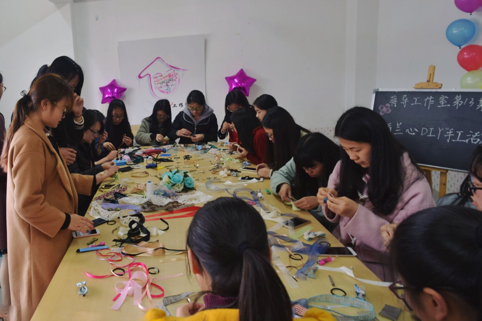 2017年3月12日下午两点半,石油化工学院蒋导工作室第13期之“蕙质兰心DIY手工饰品”活动在学生宿舍25号楼6楼活动室举行,参与活动的有来自石油化工学院的各年级女生。