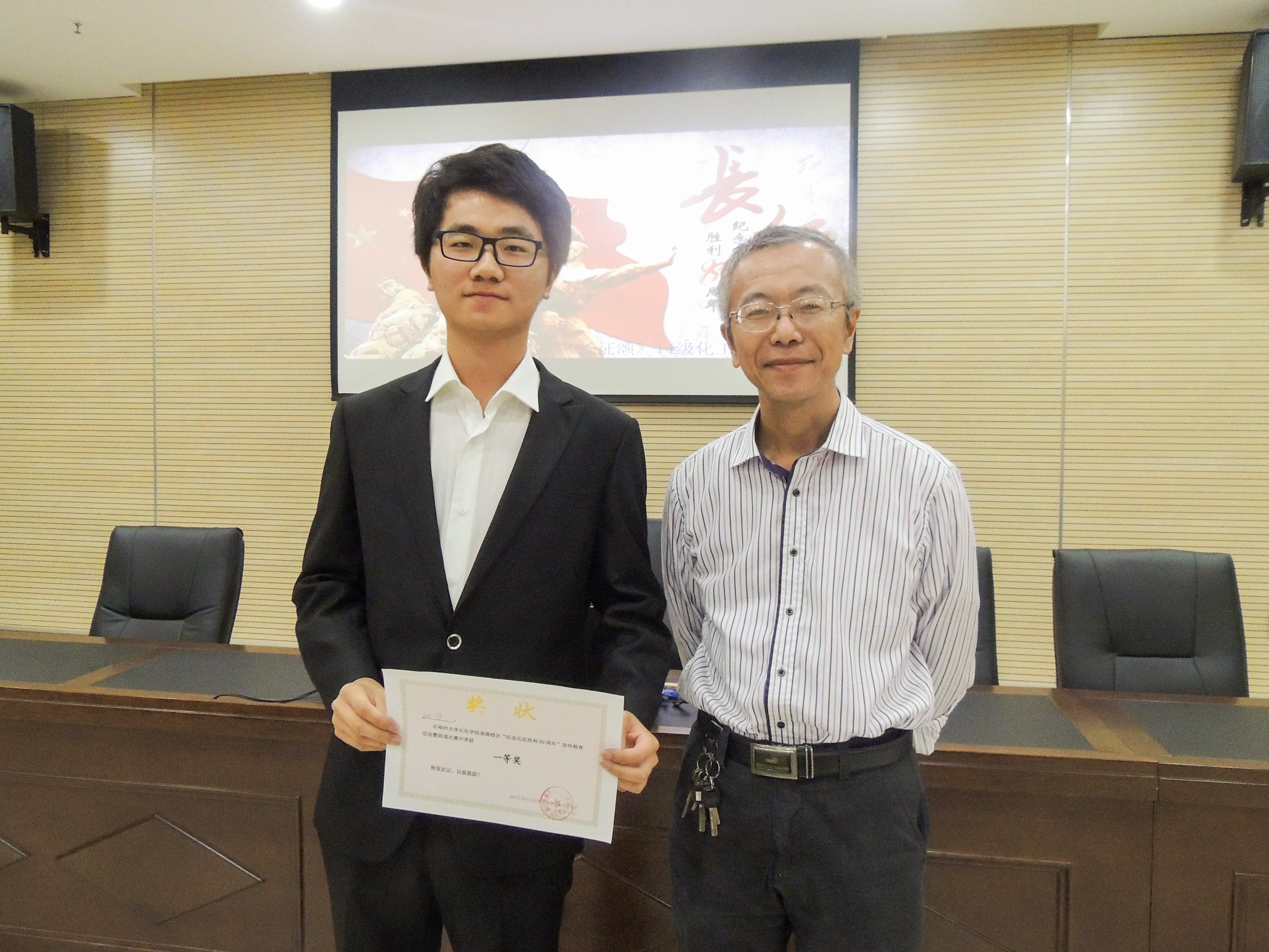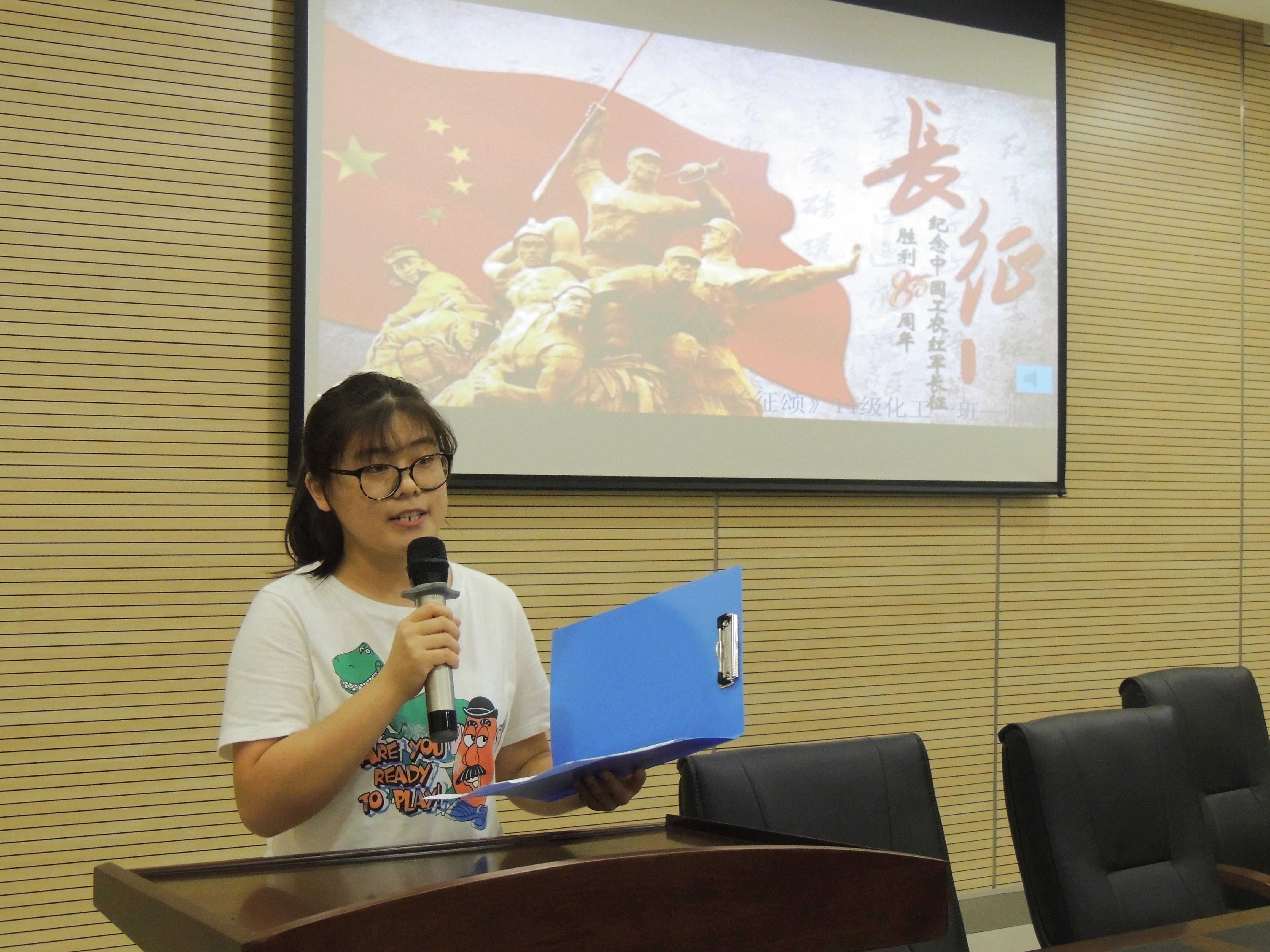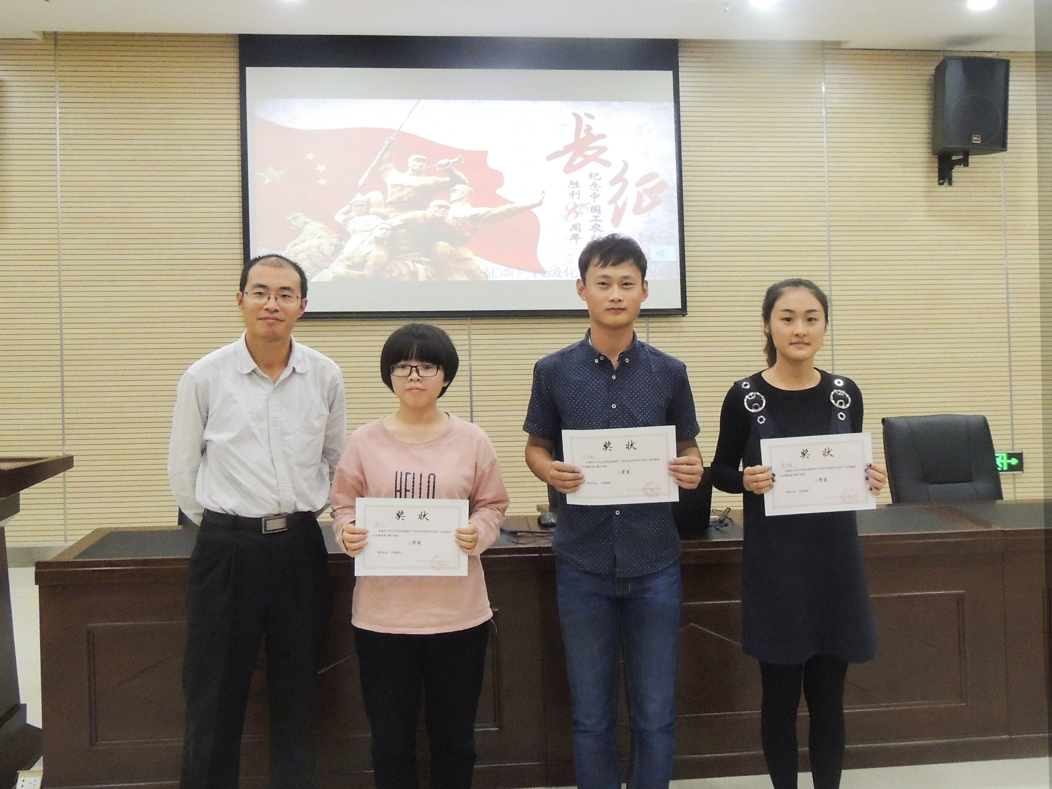 于2016年11月7日晚上七点,在泉港校区图书馆会议厅开展了“讲长征故事”的主题朗诵比赛。到会评委有院党委秘书戚正刚老师,团委副书记兼2014级辅导员伍宇翔老师。活动由韩雨宁主持。