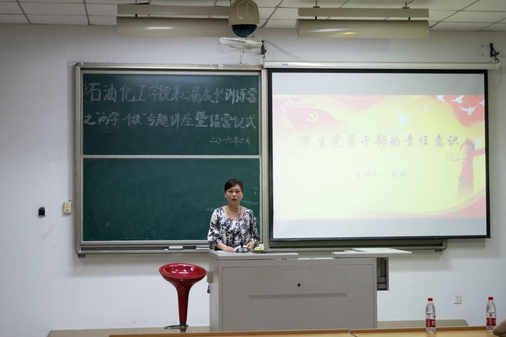石油化工学院第二届成长训练营之“两学一做”专题讲座暨结营仪式于文一405举行。石油化工学院党委副书记刘玮老师、团委书记蒋林娟老师出席了本次讲座,第二届成长训练营的营员们参与了仪式活动。