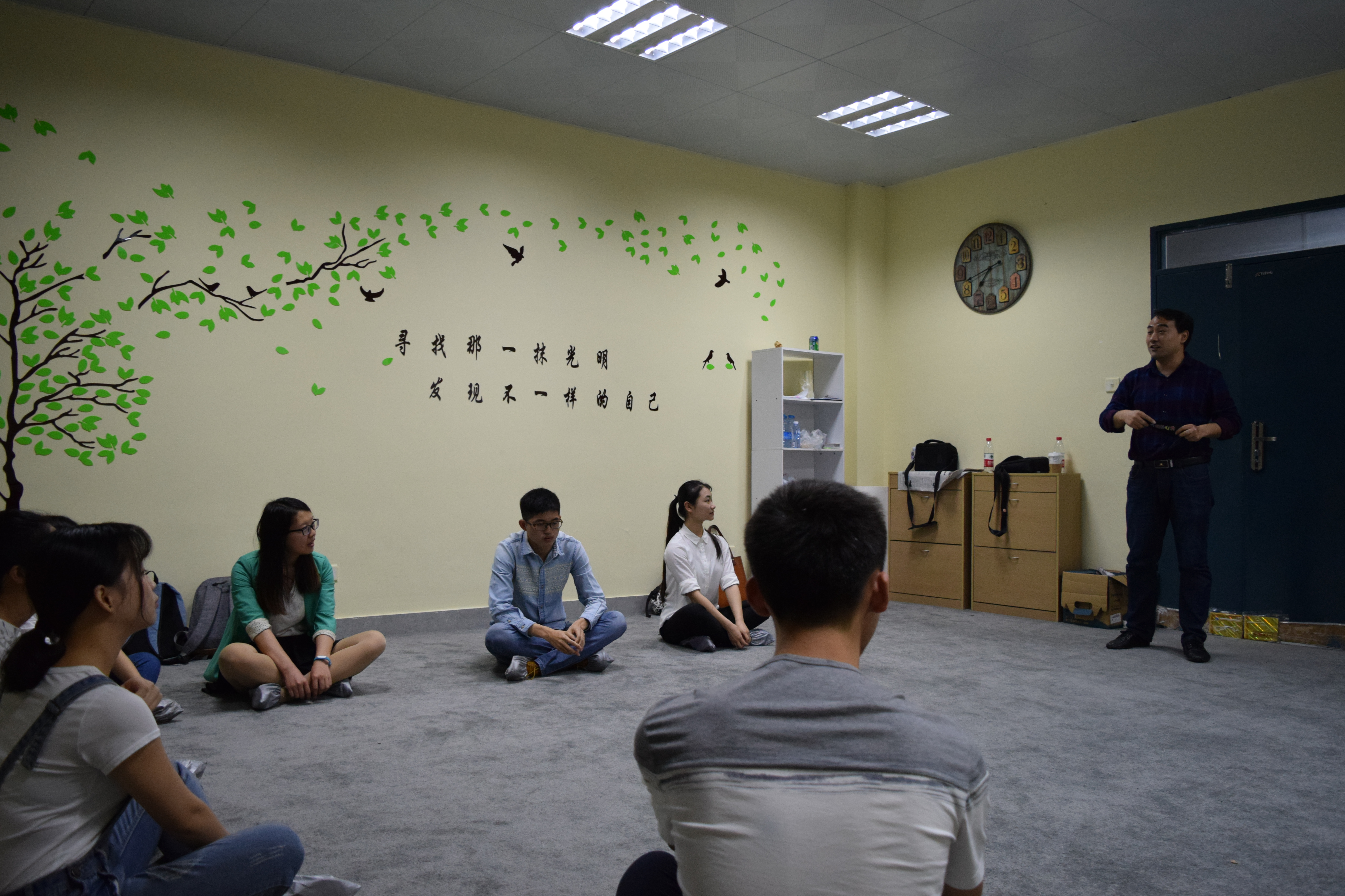 汪静筠、顾训明老师以团体游戏、角色扮演、小组讨论分享等团队形式,来帮助成员客观认识自我、悦纳自我,发现自己的优点和长处。顾训明老师在活动中指出,缺乏自信心的人通常是在社会生活中形成了错误的观念,他们会认为自己不如别人,不相信自己有权利坚持自己的主见,或者对坚持自己的主见感动高度的焦虑和恐惧等。