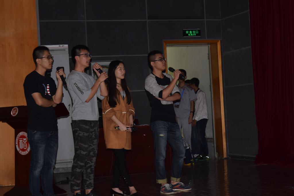 电气、石化、机械、数计四院团委学生会联合举办了以“kiss the English,kiss the world”为主题的英语电影原声配音大赛,并在2016年5月11日晚上于图书馆明德厅进行了决赛。活动由四个学院的副主席,英语联盟会长,外院学习部部长,朗阁教育老师担任此次决赛的评委。