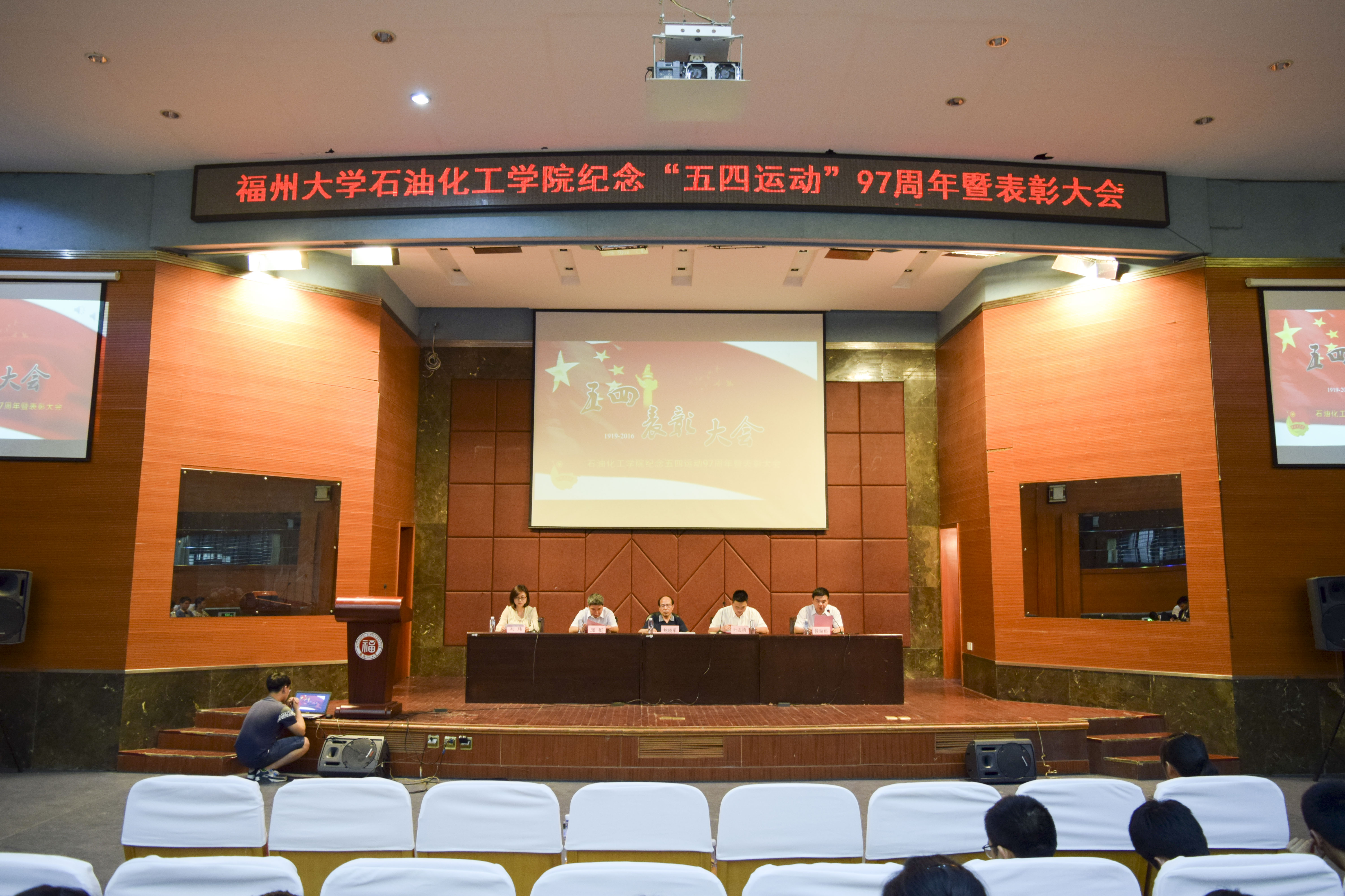 5月17日18点,石油化工学院纪念五四运动97周年暨表彰大会于嘉锡厅举行,石油化工学院院长鲍晓军教授,党委书记叶志清副教授,副院长邱挺教授,副院长侯琳熙教授等领导出席此次表彰大会。大会由石油化工学院党委副书记刘玮主持。