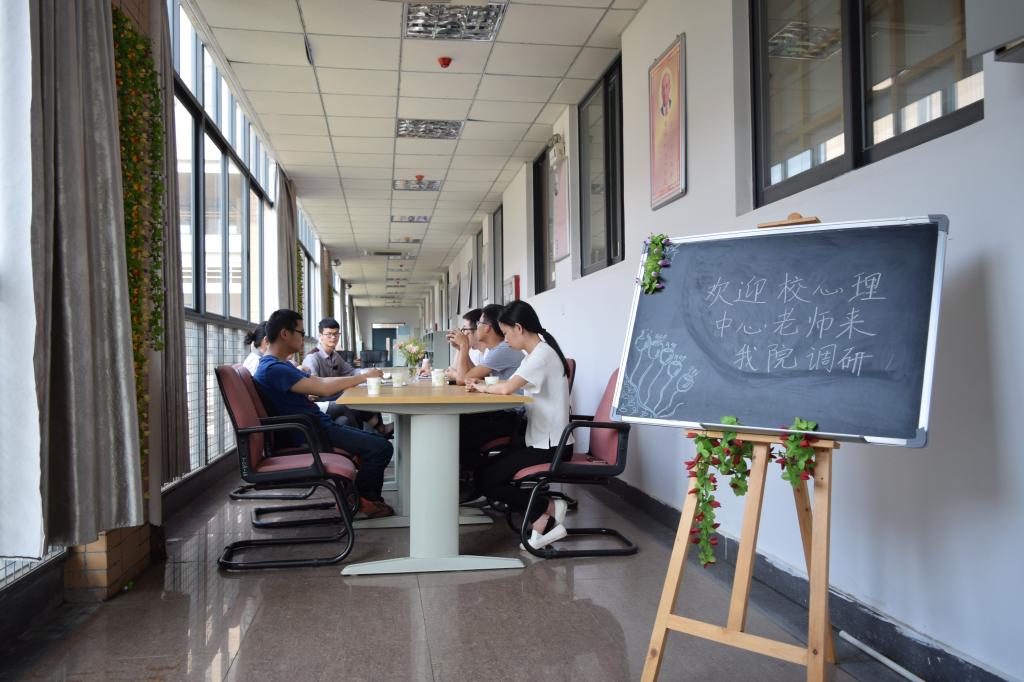 心理健康教育工作的内容做详细的汇报。我学院注重学生工作品牌建设,形成以“蒋导工作室”为核心的心理健康服务体系,打造“一个蒋导工作室,两大精品项目,三支队伍建设,四项基础工作”的 “1234工程”。二、学院开展心理工作所遇到的困难。心理部部长陈招豪做了学院心理工作年度总结,提出了“活动开展形式较难创新、学生学业紧张,易与心理健康教育活动开展时间冲突”等六方面心理健康教育开展的难题。希望能有更多机会与其他高校进行交流合作,引入更多社会资源。第三个方面,调研会围绕学院对校心理中心工作的意见与建议展开。学院从多方面提出了对校心理中心工作的建议。