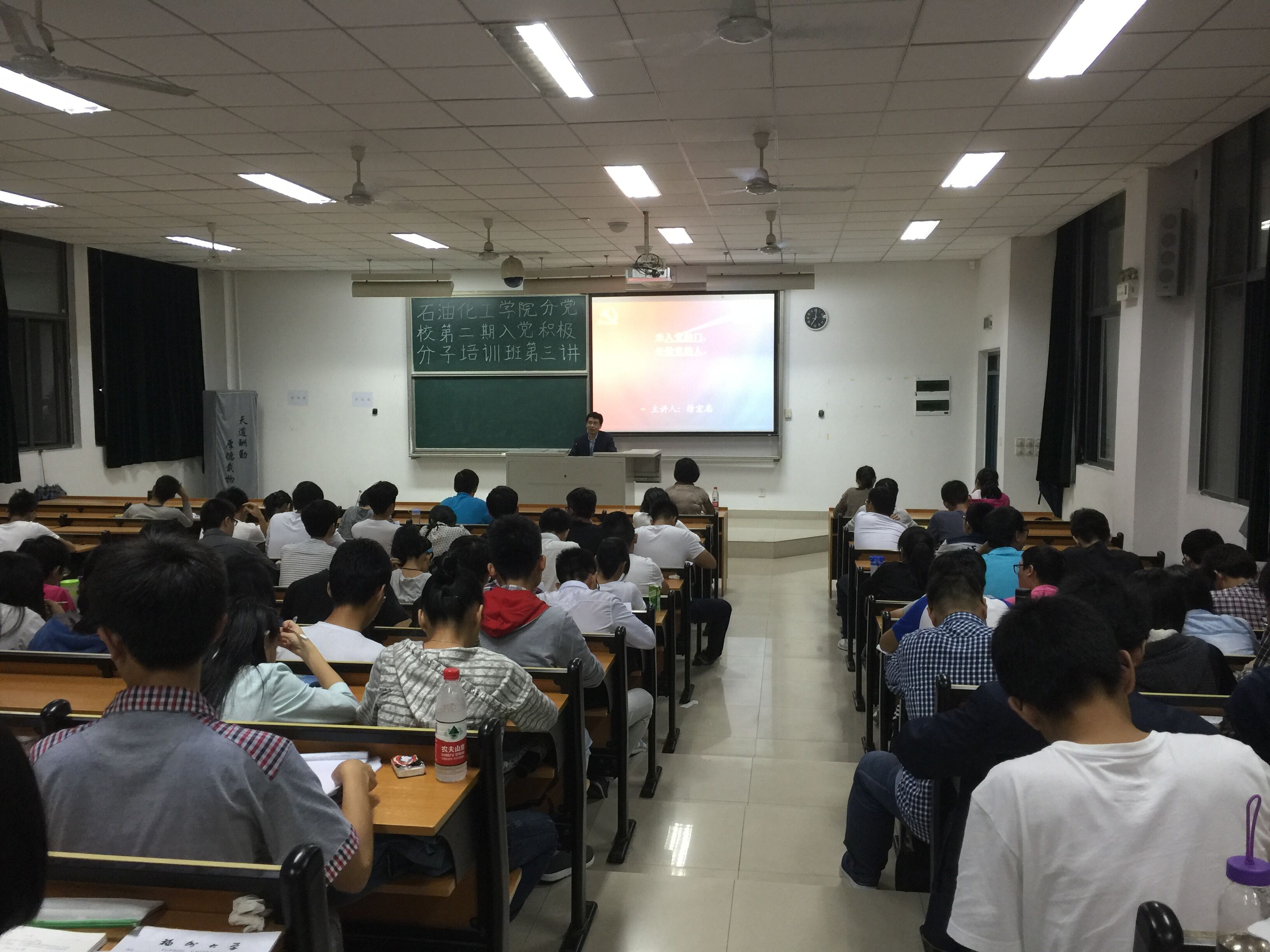 2015年11月16日晚,以“未入党的门,先做党的人”为主题的石油化工学院分党校第二期入党积极分子培训班第三讲在文二-203顺利进行。此次培训由校组织部徐宏志副部长主讲。本次讲座旨在端正积极分子的入党动机,未进党的门,先做党的人。