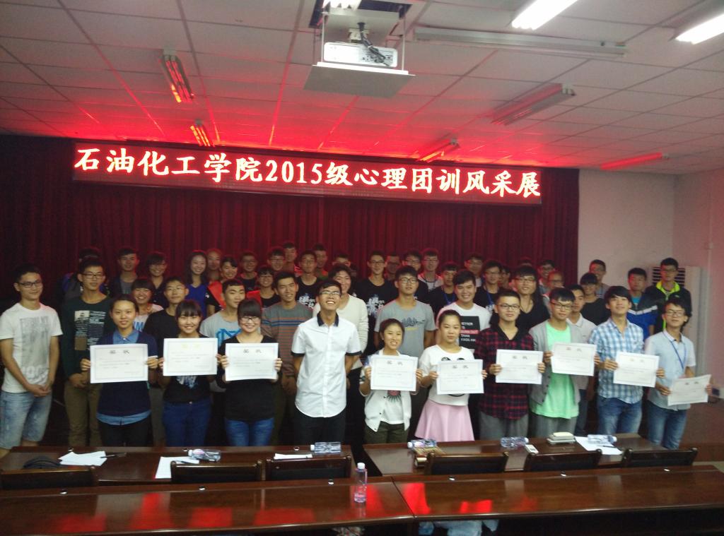学生会心理部于嘉锡楼413举办了15级新生心理团训风采展。活动邀请了石油化工学院团委学生会主席团以及15级各班心理保健员。本次活动由刘蕊琪主持。
