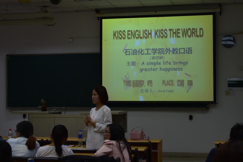 为了提高同学们对学习英语的热情,更好地提升英语口语能力,2015年10月22日下午,石油化工学院于教学楼中楼205展开外教口语班第四期活动。学院邀请了福州对外经济贸易职业技术学院的外教老师——Mr.Jordi Vidal,继续由他带来精彩的口语课程。