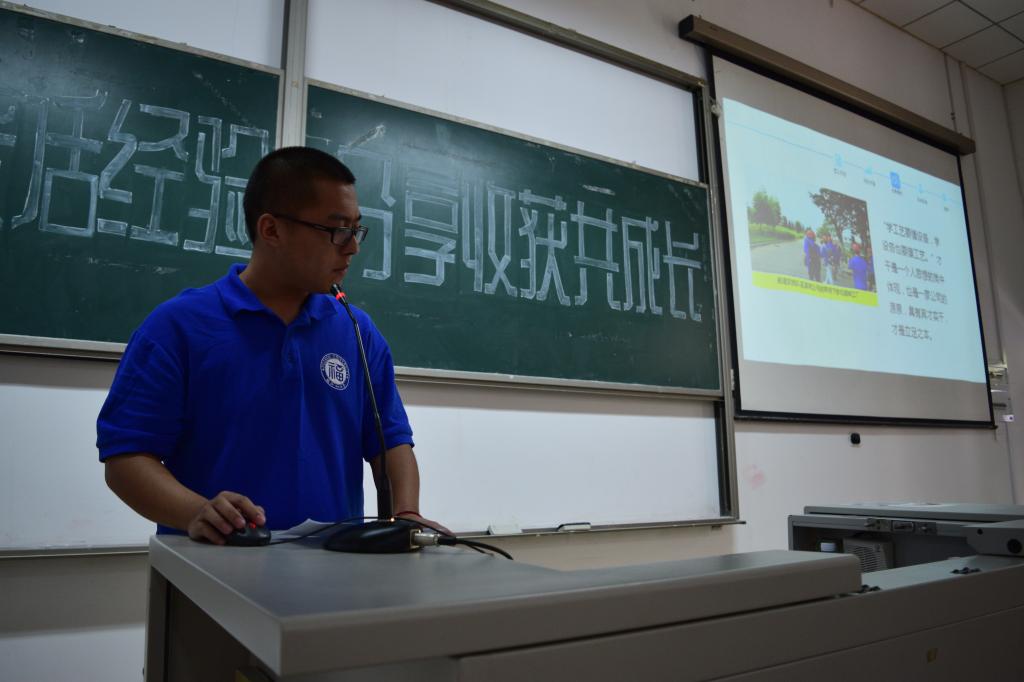 为加强2015级新生对大学的了解,深刻感受暑期社会实践活动精神与意义,2015年9月12日下午,石油化工学院团委学生会在文4-102组织开展“实践归来话经验,分享收获共成长”为主题的暑期社会实践分享大会。出席本次大会的领导有:校团委科技与创业实践部部长林航老师、石油化工学院党委副书记刘玮老师以及学院各年级辅导员。