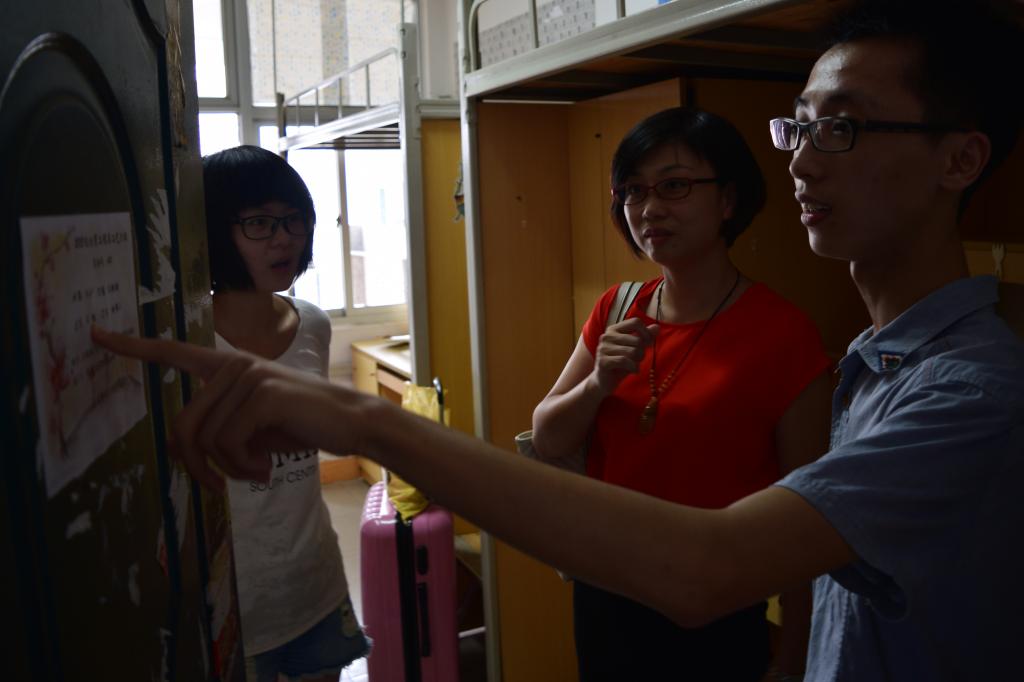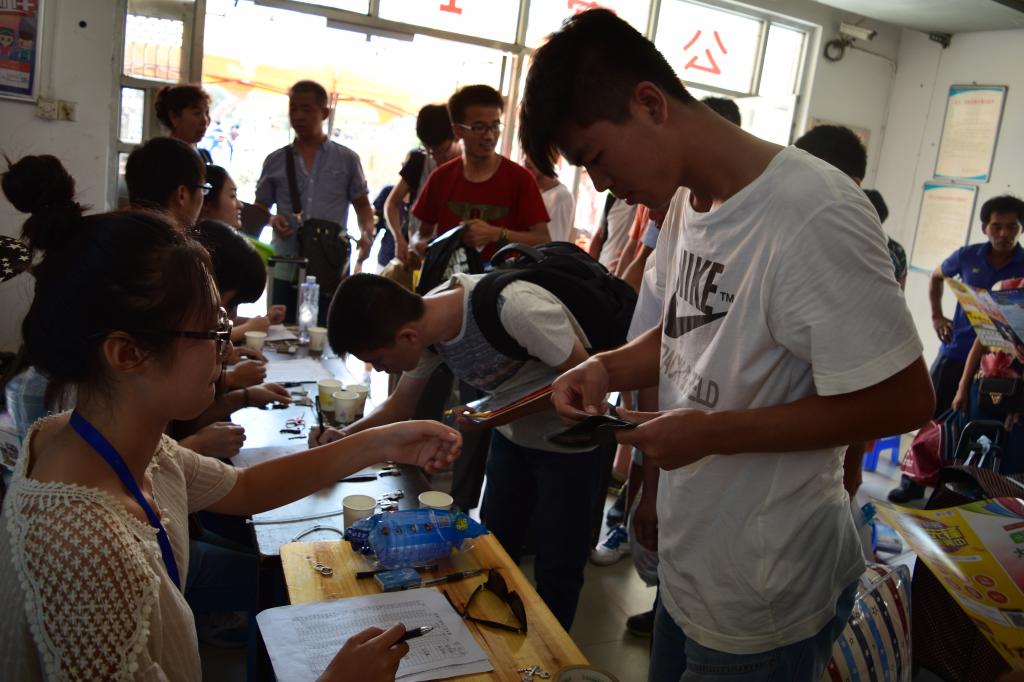 石油化工学院迎来了来自五湖四海的2015级新生。早上7点,学生会成员及各班级的志愿者们就来到了石油化工学院的各处工作地点展开了新生接待工作。尽管一大早便骄阳似火,却丝毫没有阻碍志愿者们的热情,志愿者们个个大汗淋漓,带领新生入住宿舍、完成注册,耐心指引各个公共场所的地理位置等。志愿者们亲切友好的笑容和努力负责的工作态度展示了石油化工学院良好的精神风貌,也使得一路奔波而来的家长们得以放心、安心。
