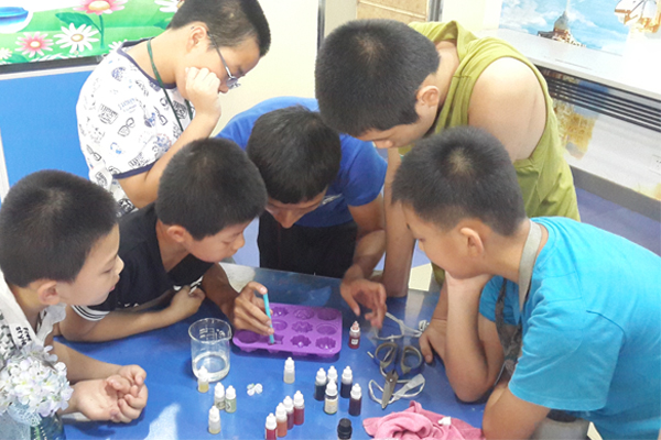 此次活动在金环社区的科学工作室举办,实践队的各种各样的瓶瓶罐罐的实验器材吸引了不少社区青少年的眼球,对我们的所要进行的活动产生了浓厚的兴趣。首先,实践队队长说明了此次实验的内容,即利用水晶滴胶制作生活小饰品,并强调了实验中应该注意的安全问题以及注意事项,接着,简要地介绍了此次实验实验的原理。在实验过程中,在队员们的合作下,队长亲身示范,并在此强调实验的成功关键在于两种溶液的配比,社区的青少年听得津津有味,各个都跃跃欲试。接着,在实践队队员们的指导和帮助下,社区青少年参与到了装饰品的制作过程。小伙伴们热情高涨,都想通过自己的努力,制作出精美的装饰物送给自己的爸爸妈妈。在活动的最后,社区青少年表示,很高兴能够参加此次活动,在得到这些精美的小礼物的同时,更多是学到了知识。