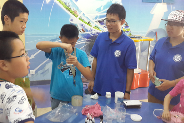 石油化工学院赴金山金环社区志愿服务实践队举行了以“让知识引领你感受科学的魅力”为主题的活动,队员们运用专业知识,带领社区的青少年们走进科学的殿堂,感受科学的魅力。