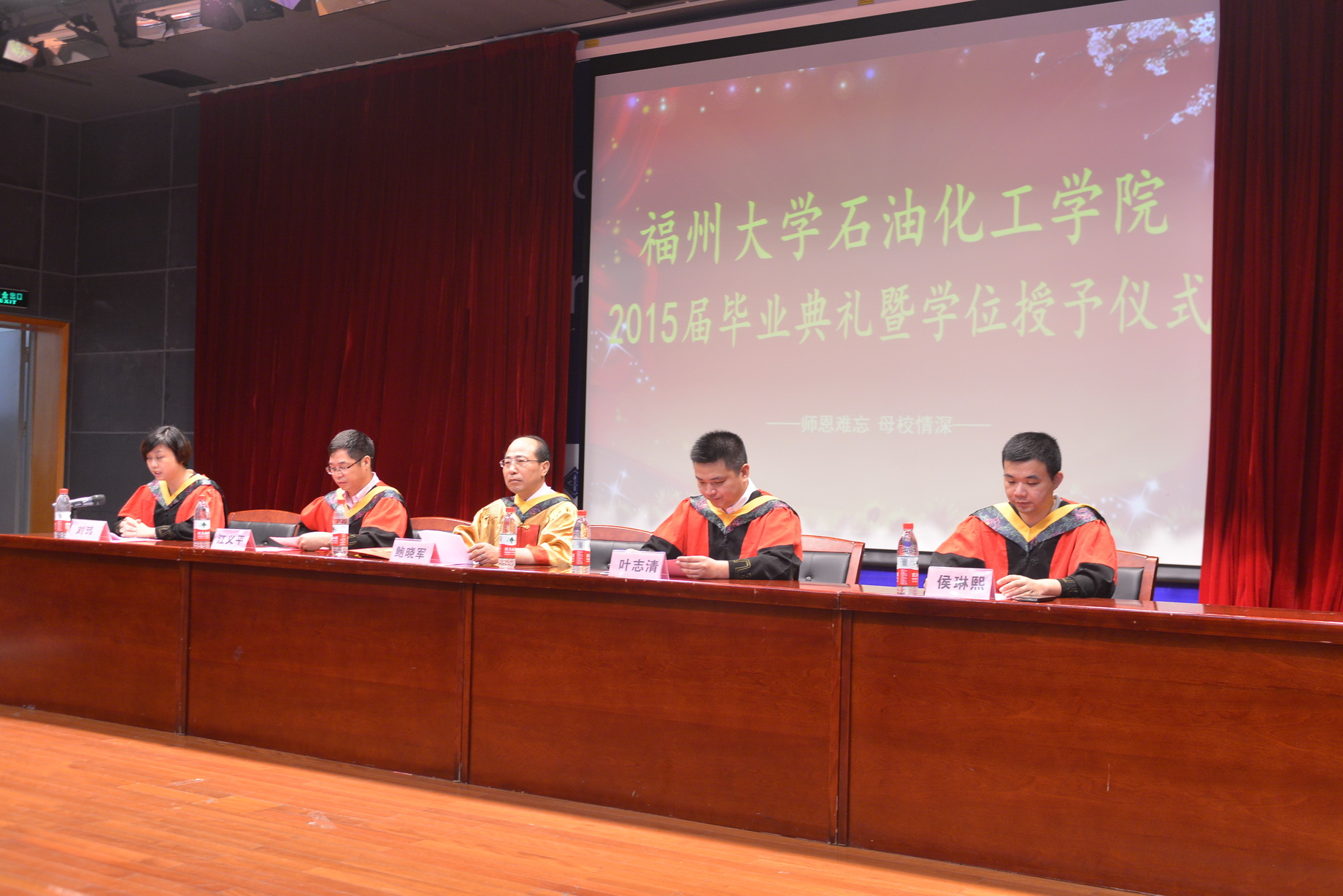 石油化工学院2015届毕业生毕业典礼暨学位授予仪式。出席毕业典礼的嘉宾有院长鲍晓军教授、院党委书记叶志清、副院长江义平、院长助理候琳熙,学院各系所负责人、教师代表、全体辅导员,以及学生家长们。毕业典礼由院党委副书记刘玮主持。