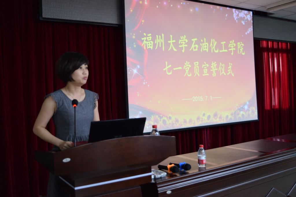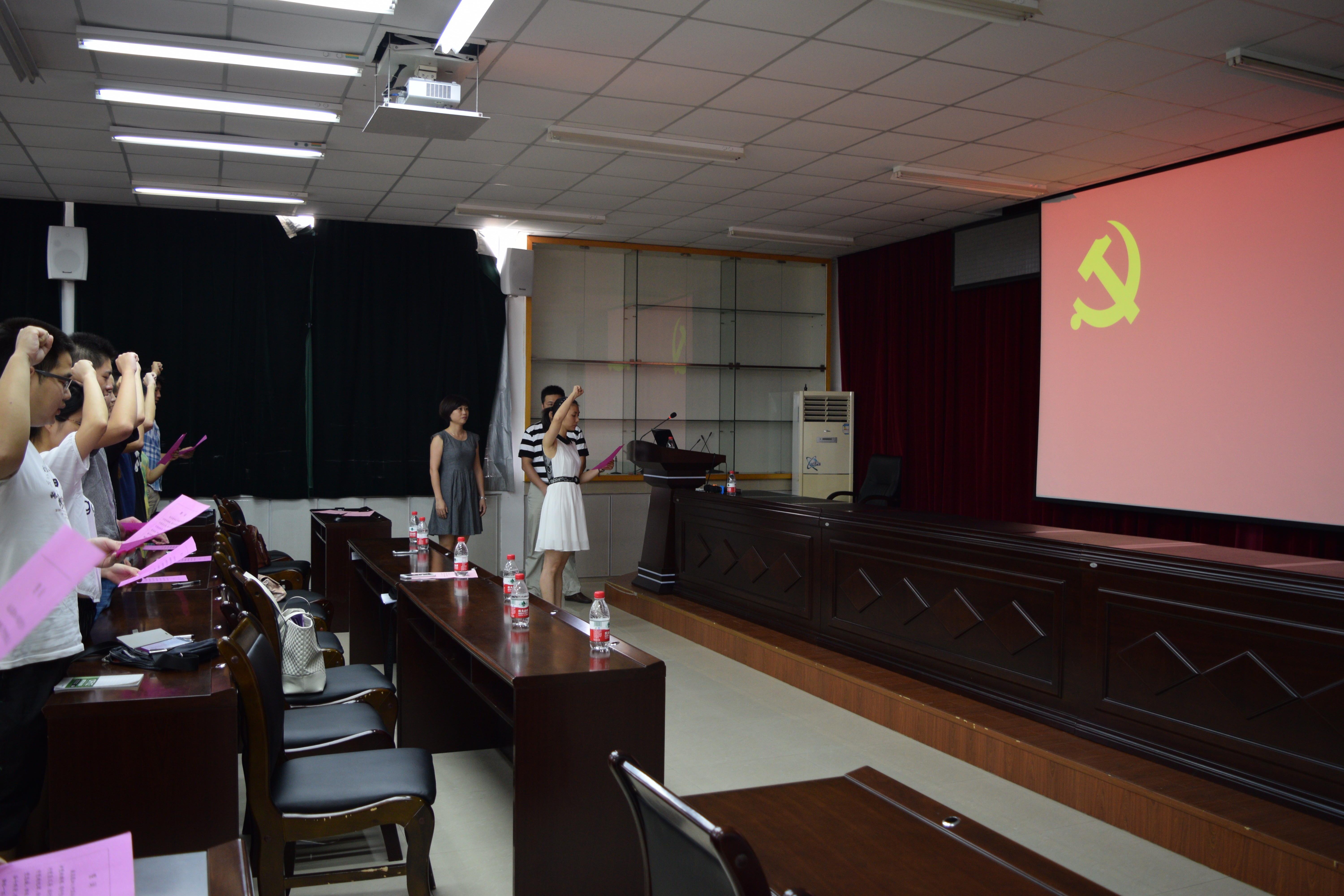 7月1日下午2:00,时值建党节之际,石油化工学院党委在嘉锡楼413举行了庄严而隆重的学生党员宣誓活动。学院党委书记叶志清、副书记刘玮、学院团委书记蒋林娟、党委秘书戚正钢出席了此次活动。在学院团委书记蒋林娟老师的领誓下,39名新发展的本科生和研究生预备党员进行了入党宣誓,短短一百多字的誓词是他们入党后对党的第一个承诺。叶志清书记对活动进行了高度赞扬并对新发展的党员提出了几点希望:第一,要加强理论学习;第二,要加强党性修养,提高自身素质;第三,要提升科学文化知识和专业知识的素养;第四,要起模范带头作用。